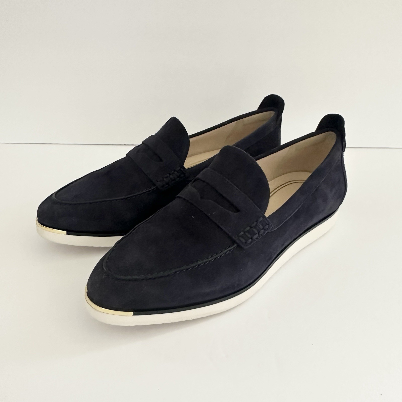 Cole Haan Grand Ambition Troy Penny Loafer Marine Blue Suede Women s Size 5.5