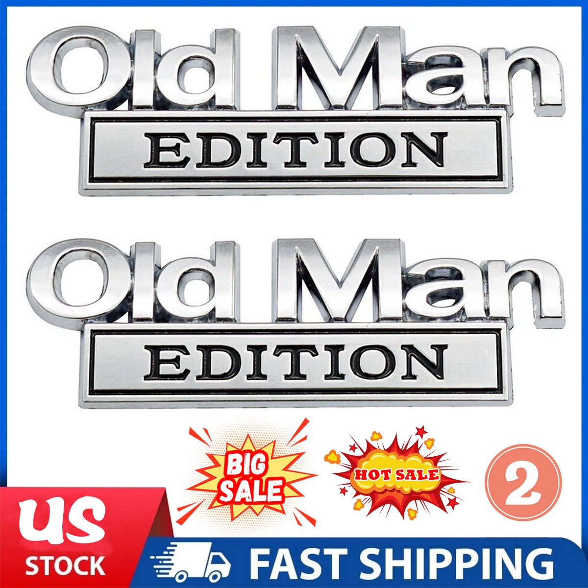 • 2pcs Old Man Edition 3D Emblem Sticker Badge Fender Decals Car Truck Door TL