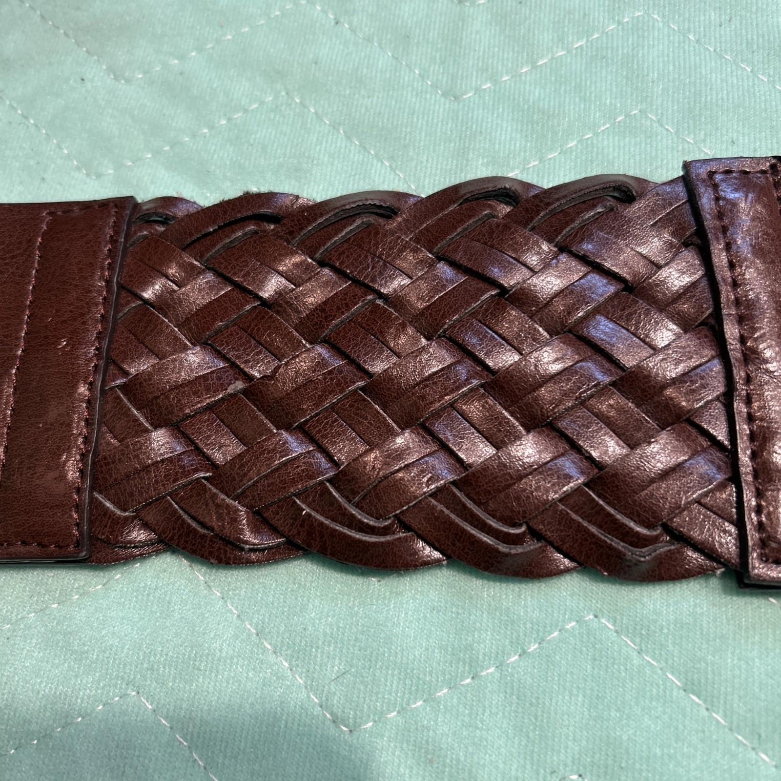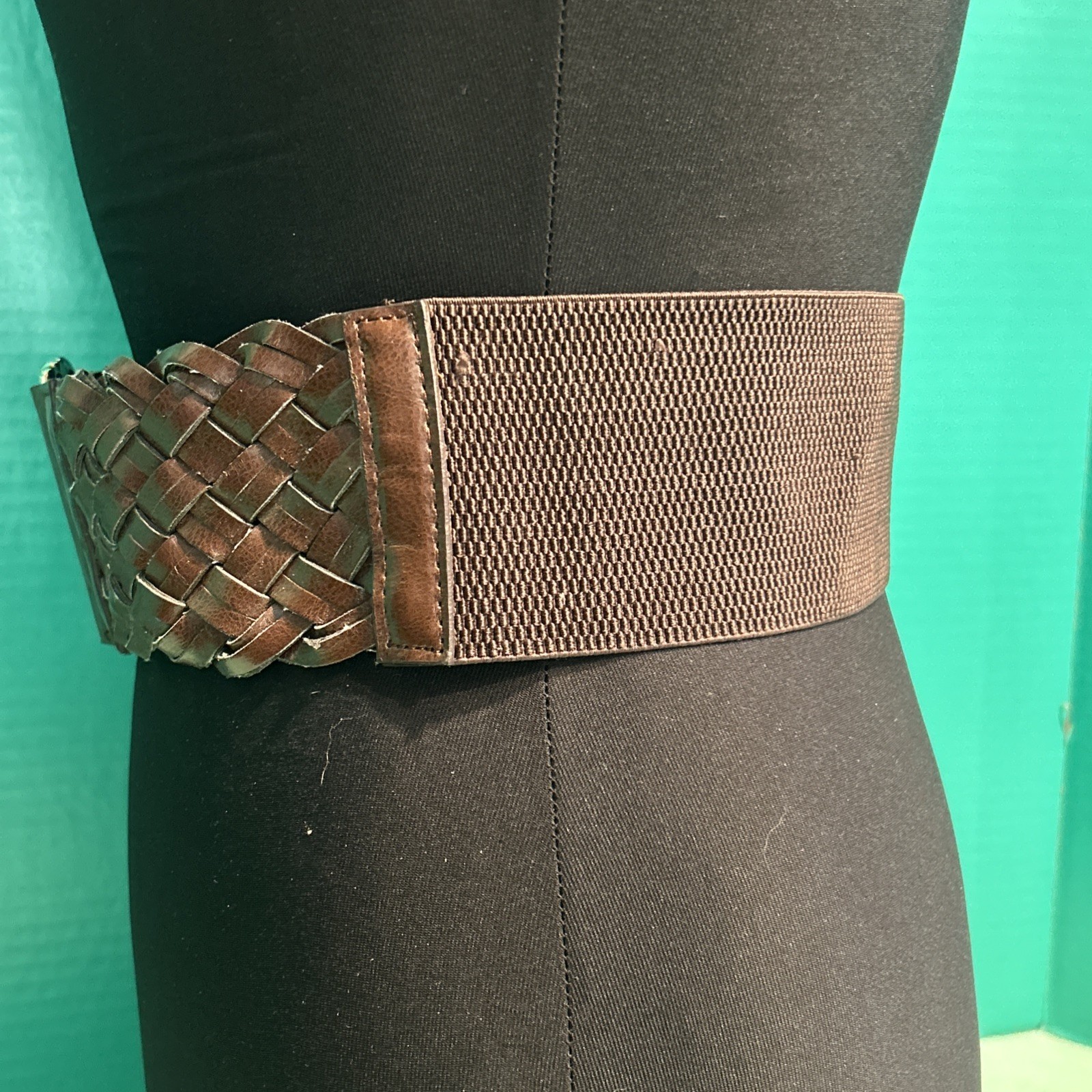 как выглядит Women s 29 Medium Brown Braided 3" Wide Belt Elastic Back GUC фото