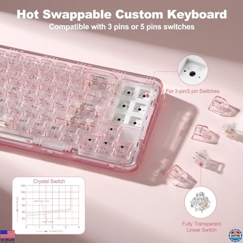 Wireless Hot Swappable Mechanical Keyboard 68 RGB Backlit USB-C BT5.0 Pink