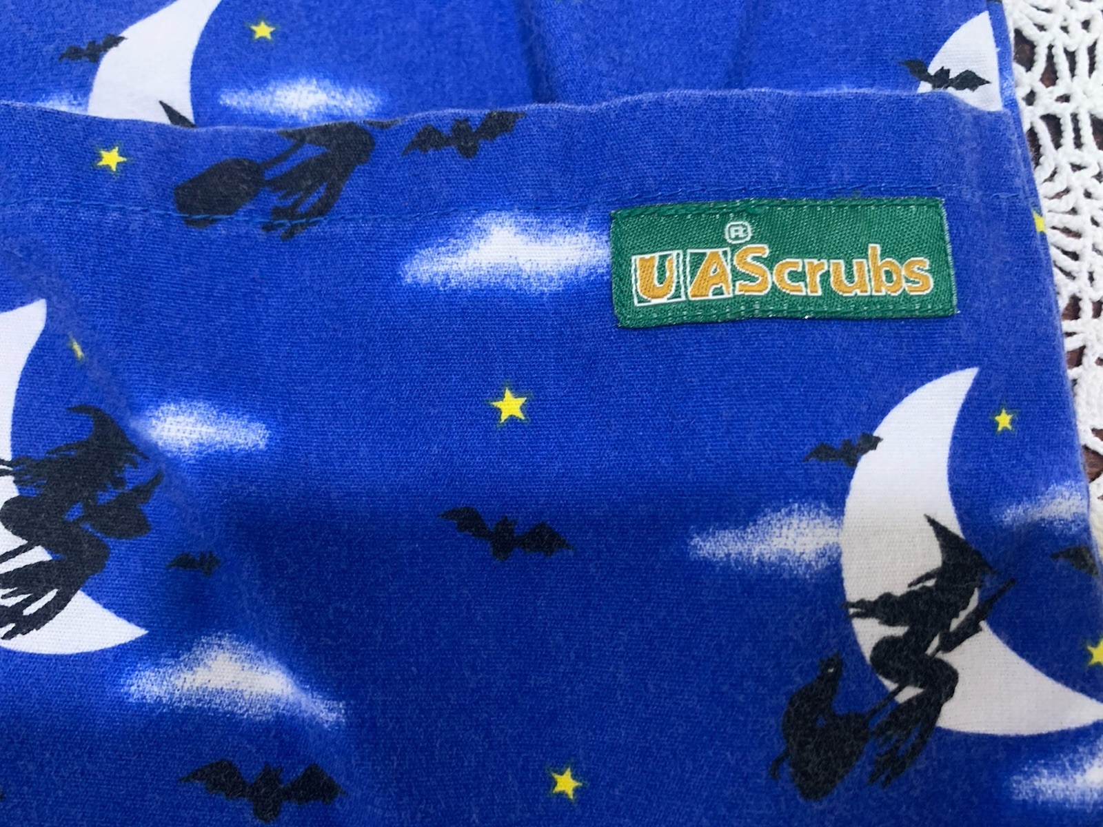 UA Scrubs Halloween Women's Top Blue Midnight Fly Witch Moon