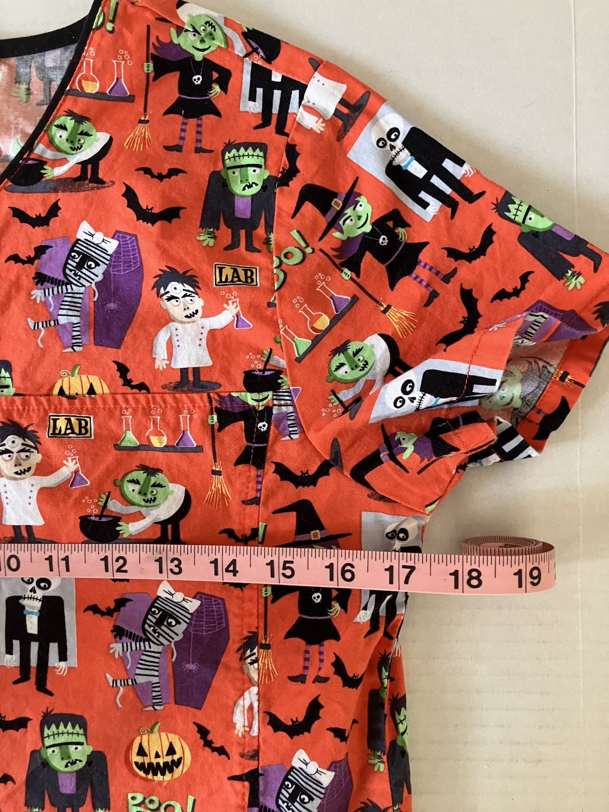 Scrubstar Scrub Top Women's XS Halloween Monsters Bats Pumpkin Witch V-Neck