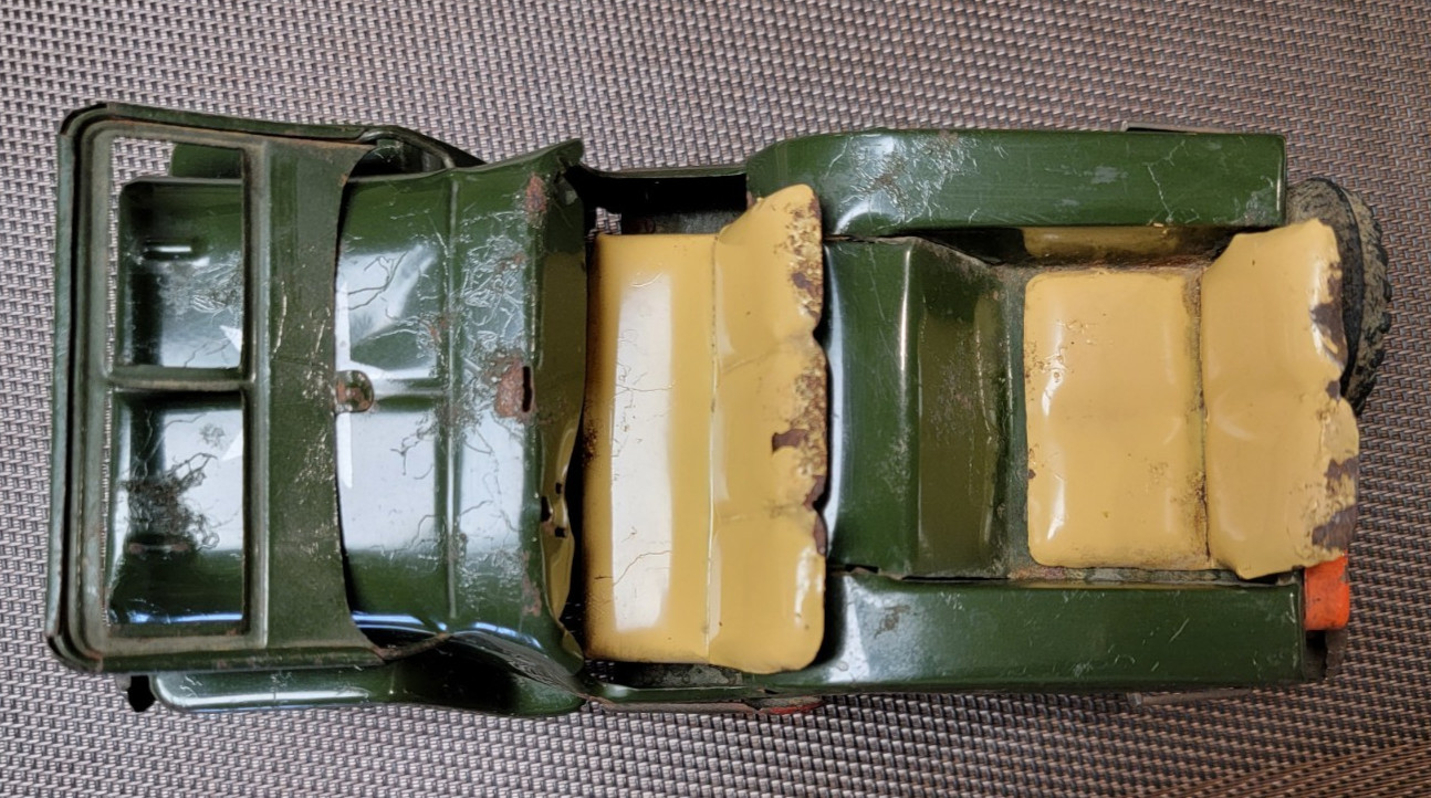 Vintage LUCKY US Army Willys Jeep Tin Toy Japan