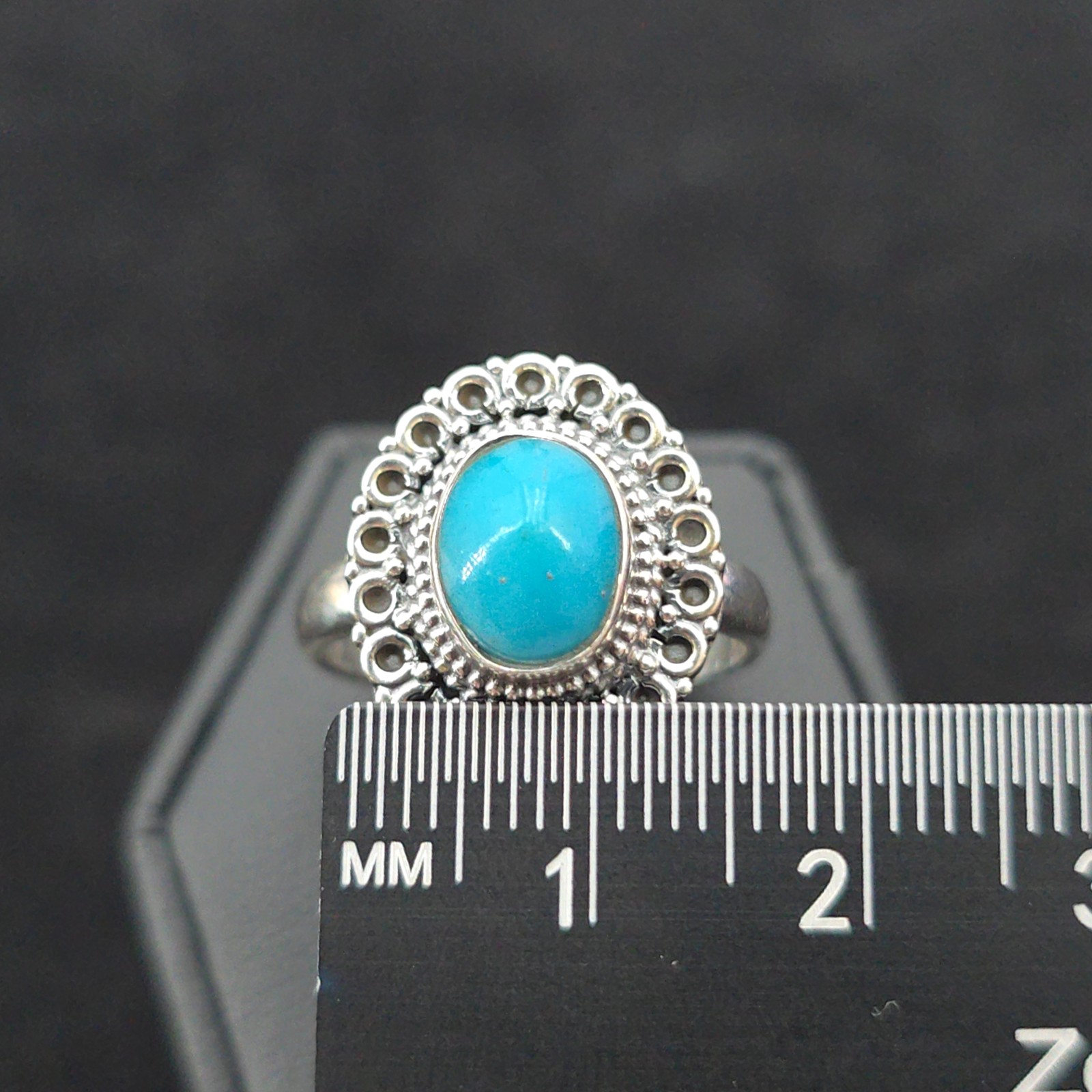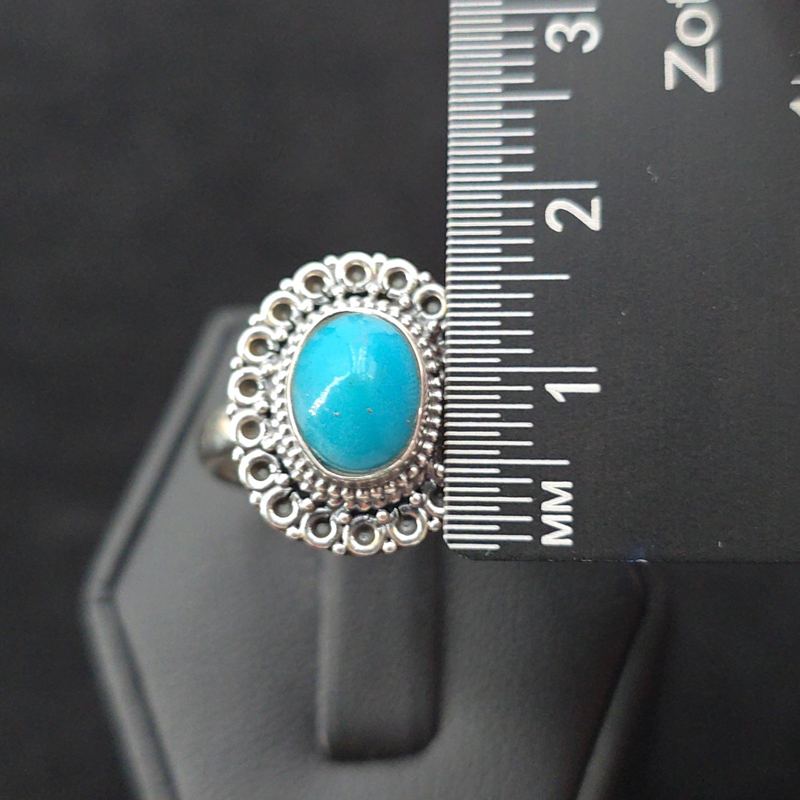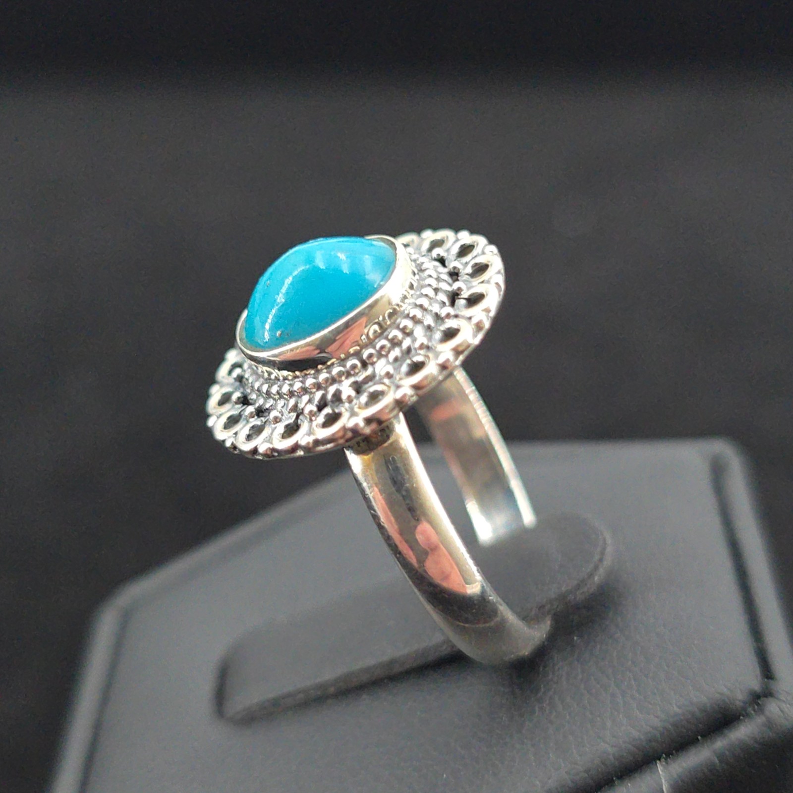 как выглядит Sterling Turquoise Filigree Oval Ring Womens Size 8 Boho Ornate Vintage Style фото
