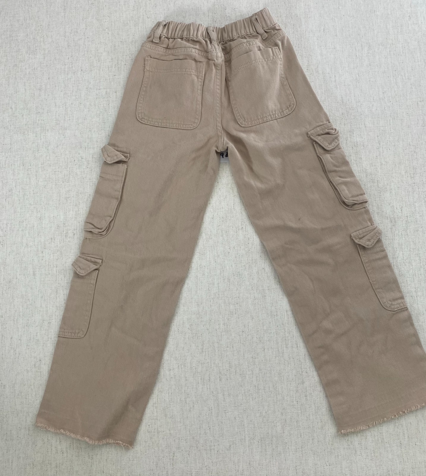 Shein Cargo Pants Girls 8-9 Brown Straight Leg Elastic Waist Button Zip Pockets