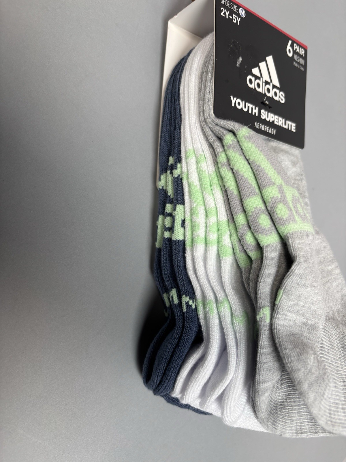 Adidas Youth Superlite No Show Socks 6-Pack M 2Y-5Y AEROREADY Gray White Blue