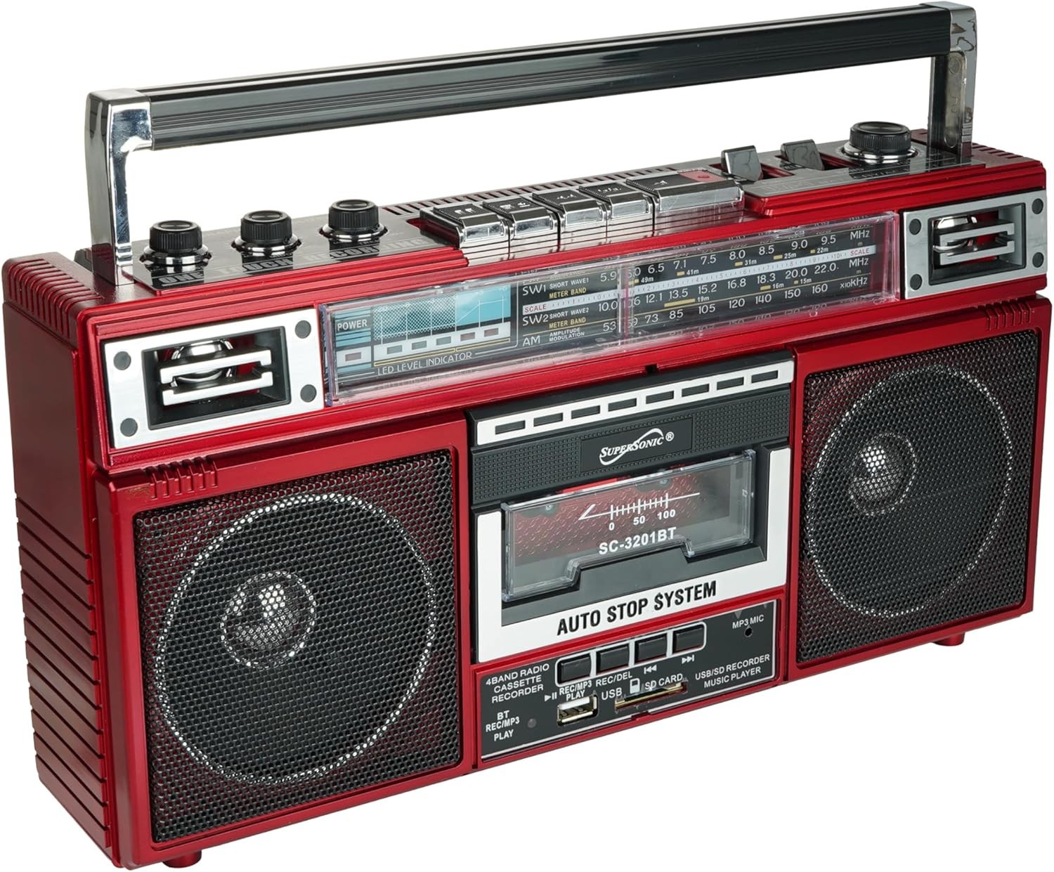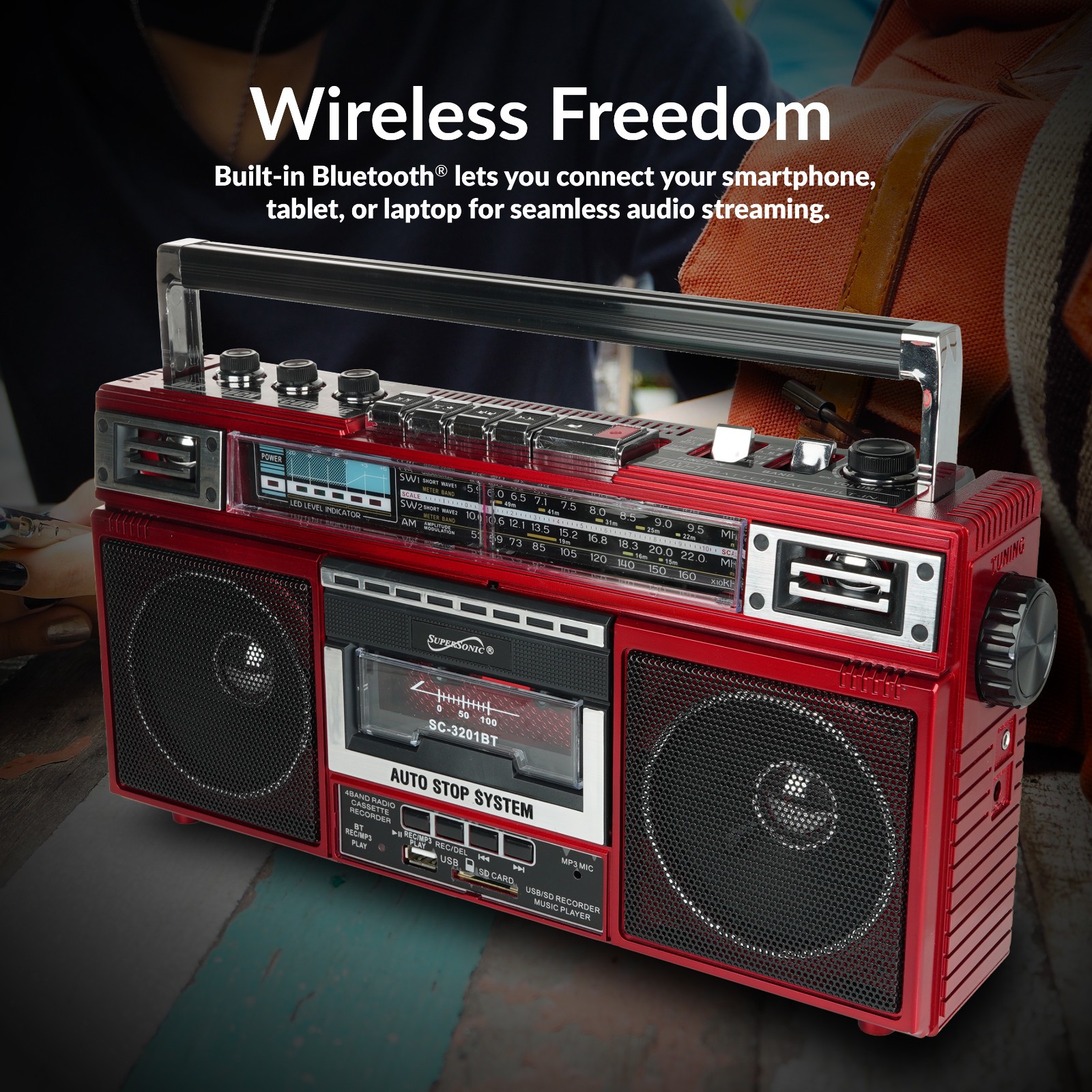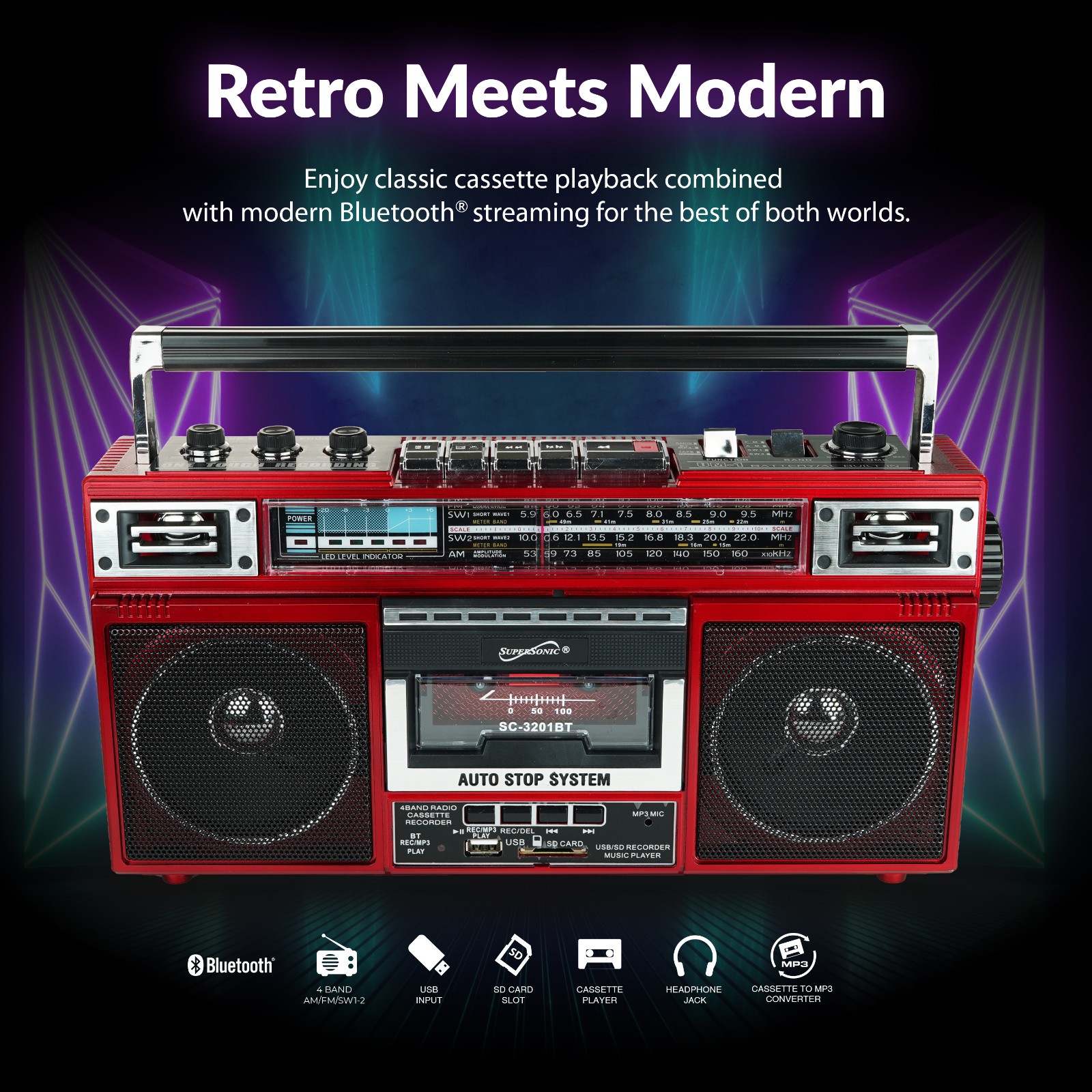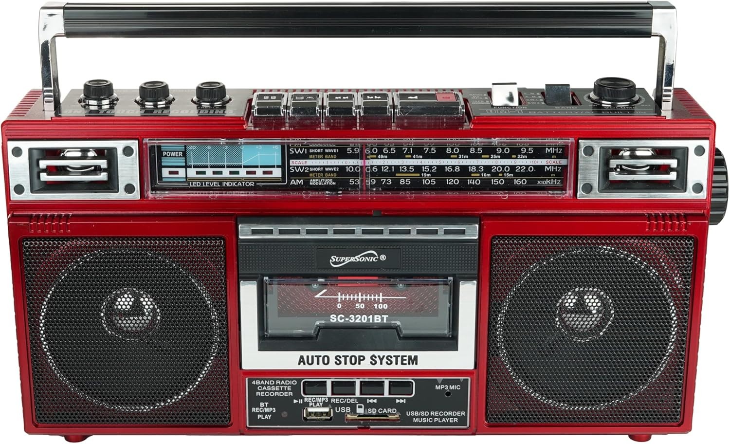 Supersonic SC-3201BT4-Band Radio Cassette Player w/ Bluetooth Radio Red