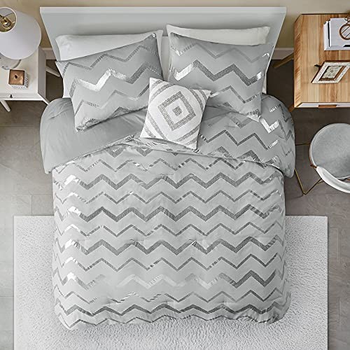 Metallic Print Grey and Silver Comforter Set for Full / Queen Grey / Silver