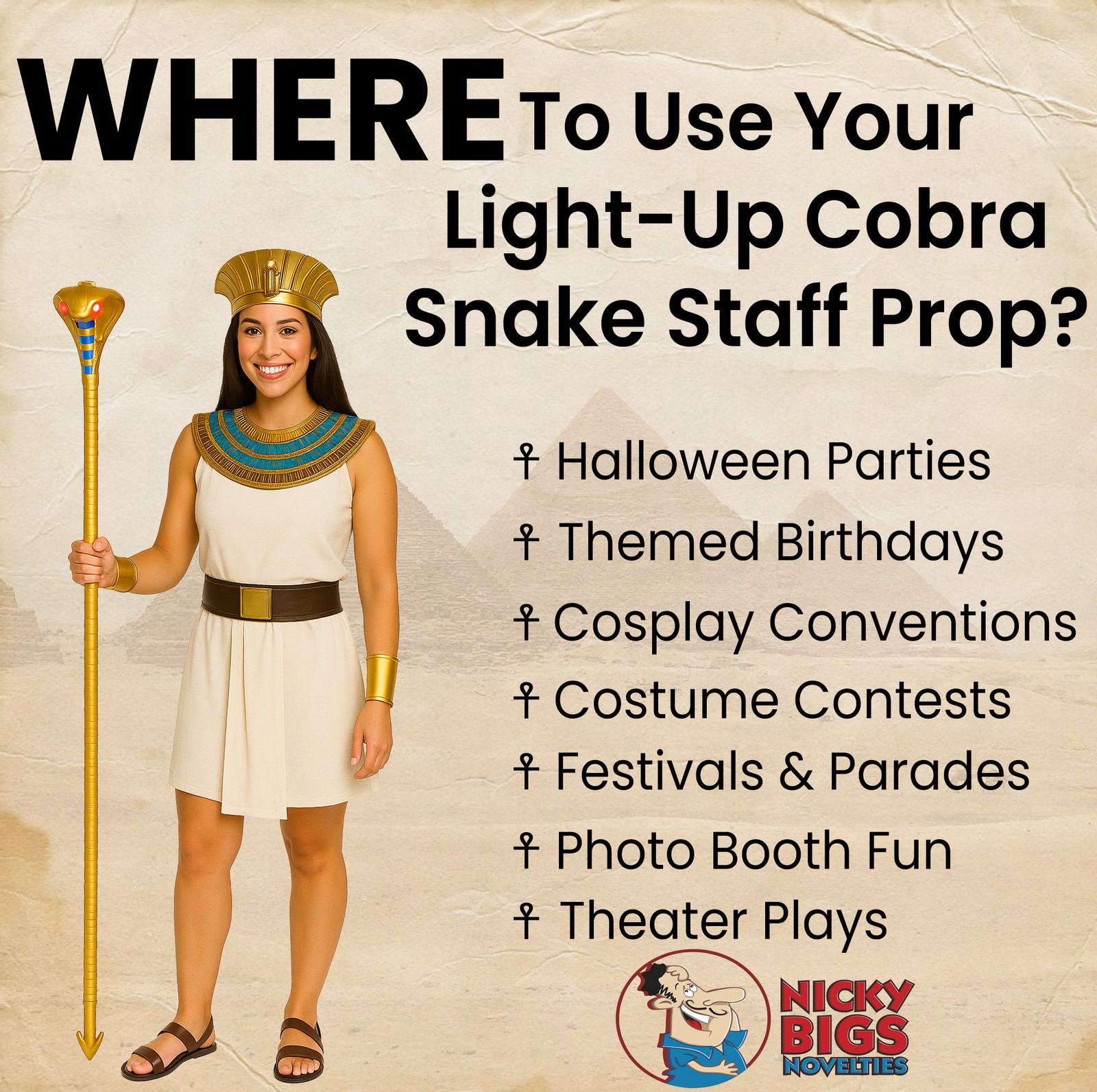 как выглядит Unisex-Adult 60" Tall Snake Cobra Cane Pharaoh Scepter Wizard Staff Costume фото