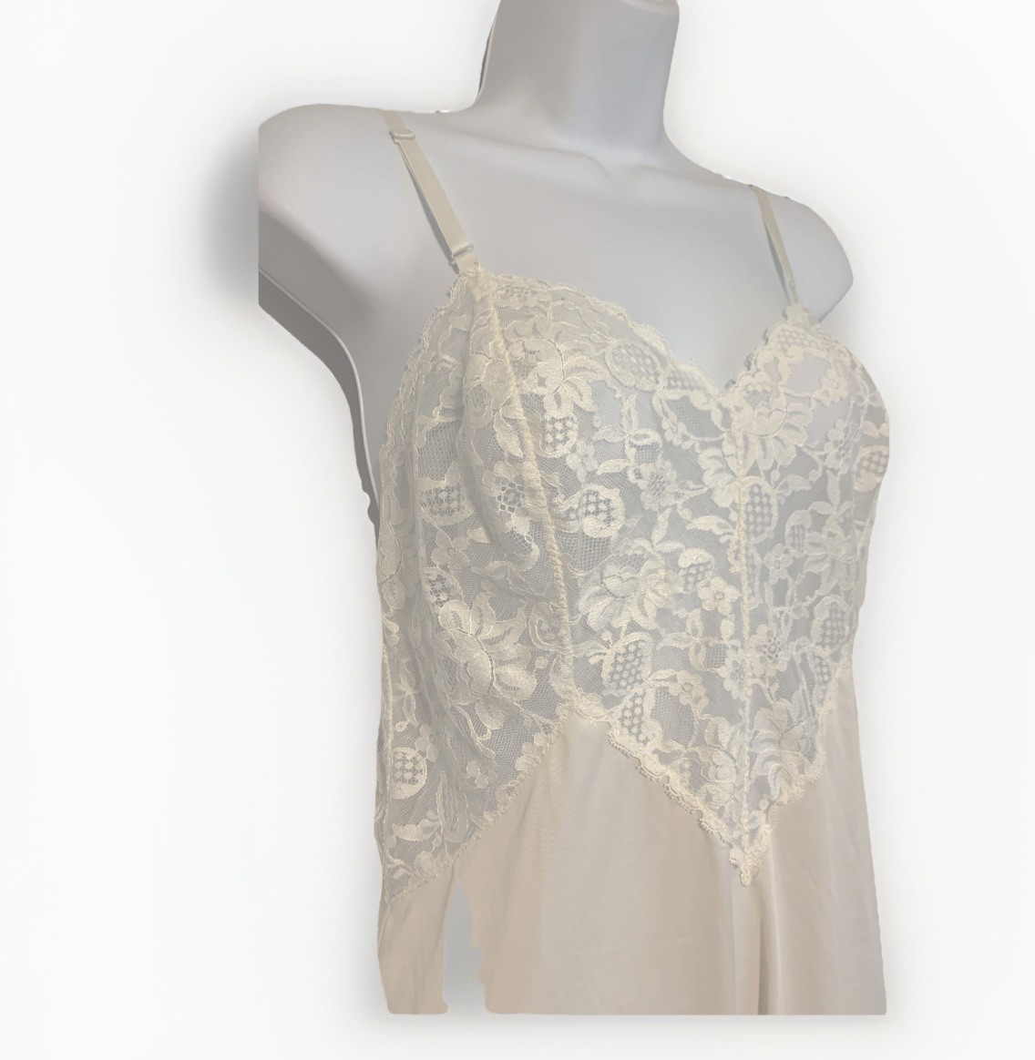 Vintage Vanity Fair Full Slip Gown Soft Ivory Floral Lace Size 38 Nylon USA EUC
