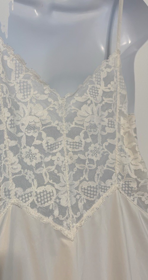 как выглядит Vintage Vanity Fair Full Slip Gown Soft Ivory Floral Lace Size 38 Nylon USA EUC фото
