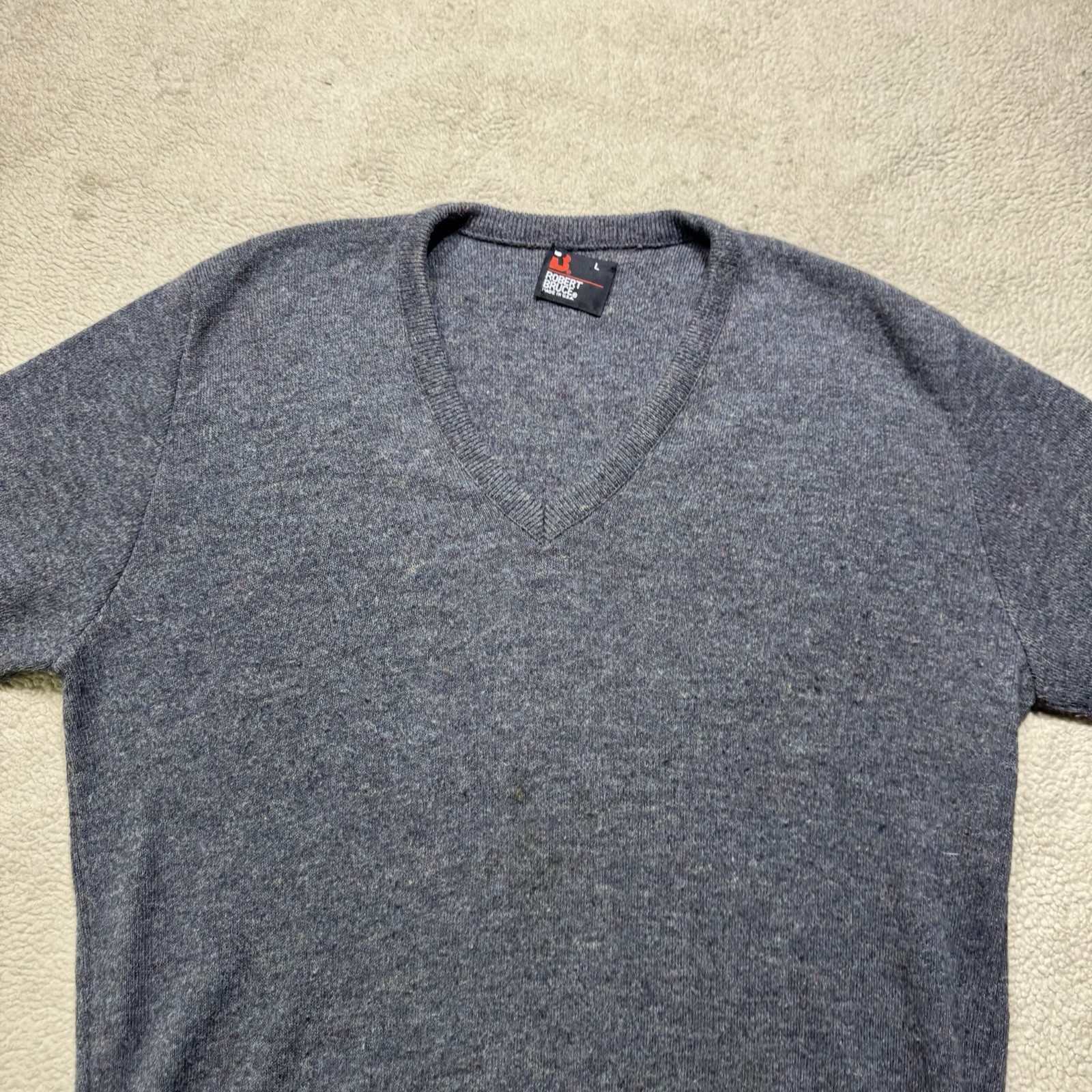 как выглядит Robert Bruce Sweater Mens Large Gray V-Neck Knit Acrylic Grandpacore Vintage фото