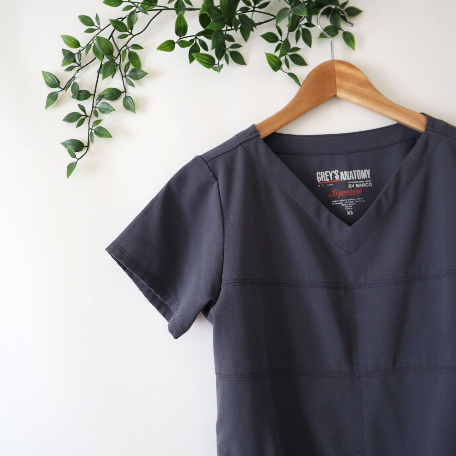 Grey's Anatomy by Barco Signature Dark Gray Short Sleeve Scrub Top Size XS