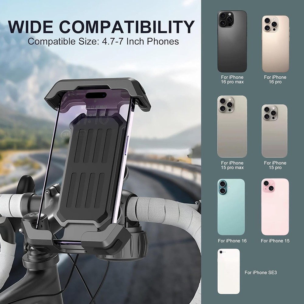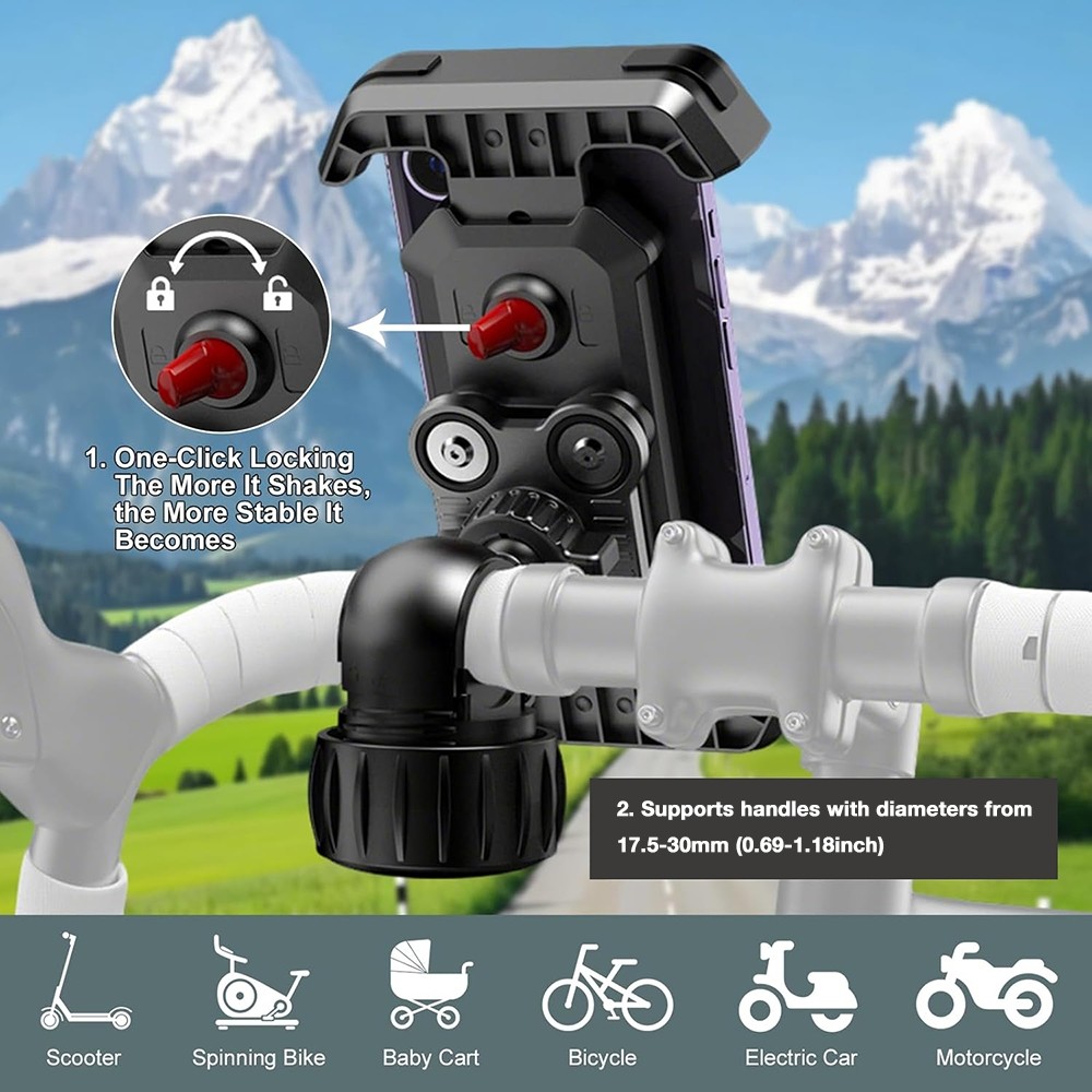 Bike Phone Holder, Phone Mount for Bicycle and Motorcycle Handlebar, Strong