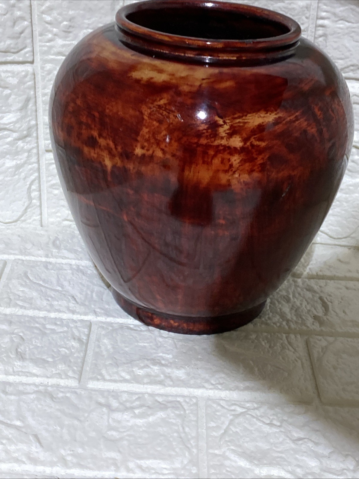 как выглядит Vintage Mahogany Wood Turned Vase Stain Lacquer 6 x6 Wood Imperfections EUC фото
