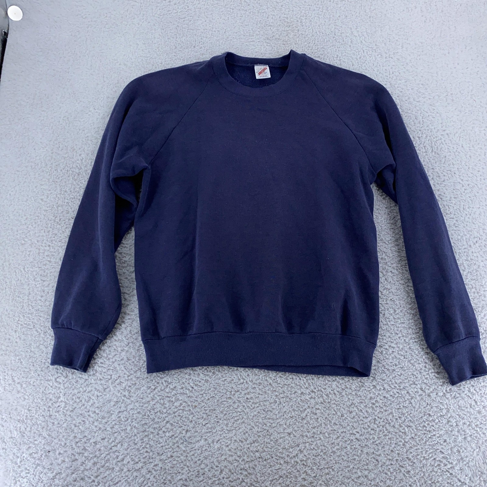 как выглядит Vintage 90s Jerzees Navy Blue Raglan Sweatshirt Mens Small Blank Crewneck USA фото