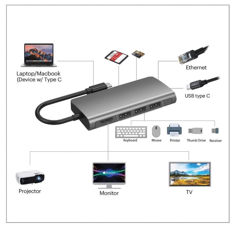 как выглядит Adesso AUH-4030-3 USB-C 8 in 1 Multi-Port Docking Station - New in Box - USA фото