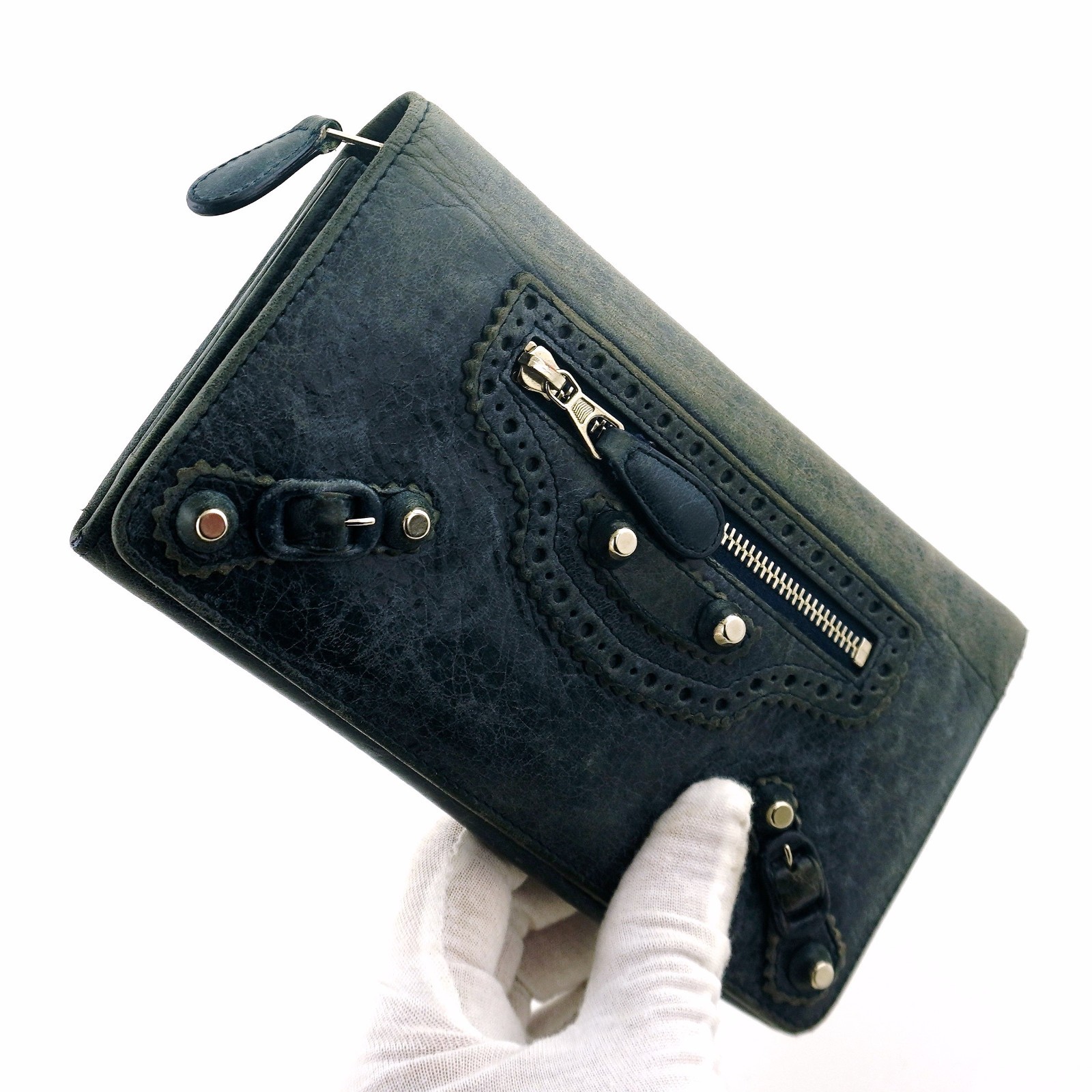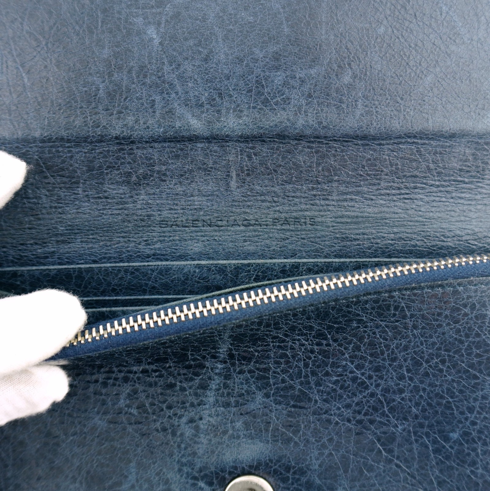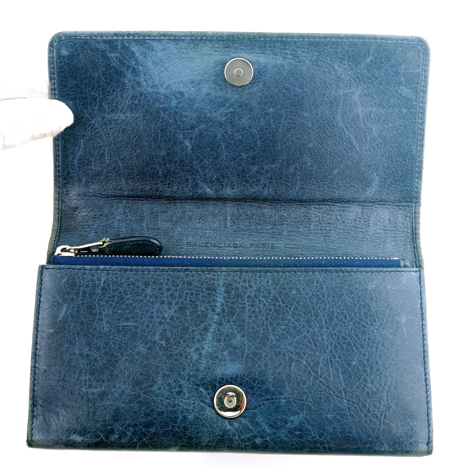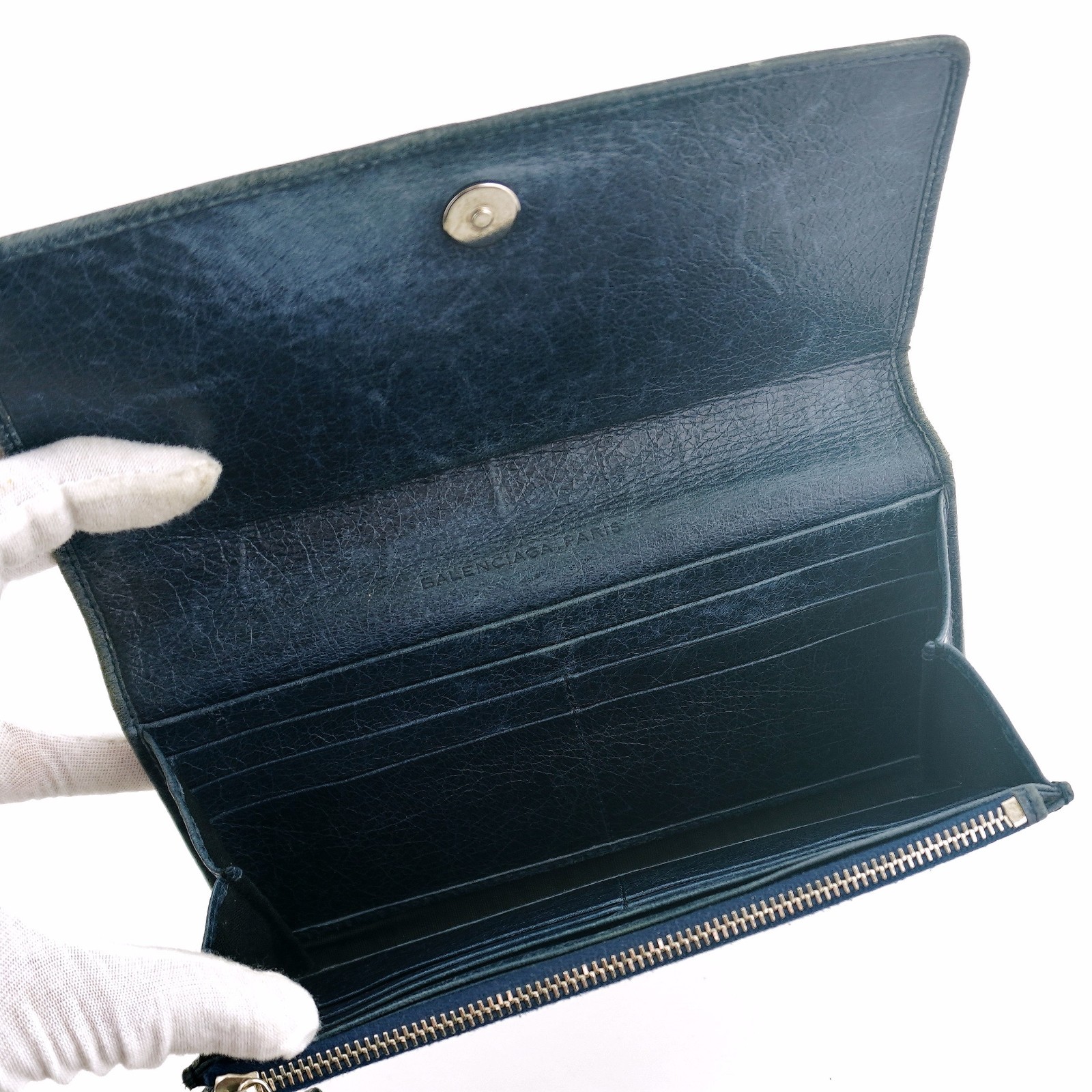 Authentic BALENCIAGA Blue Agneau Leather Continental Clutch Wallet Italy