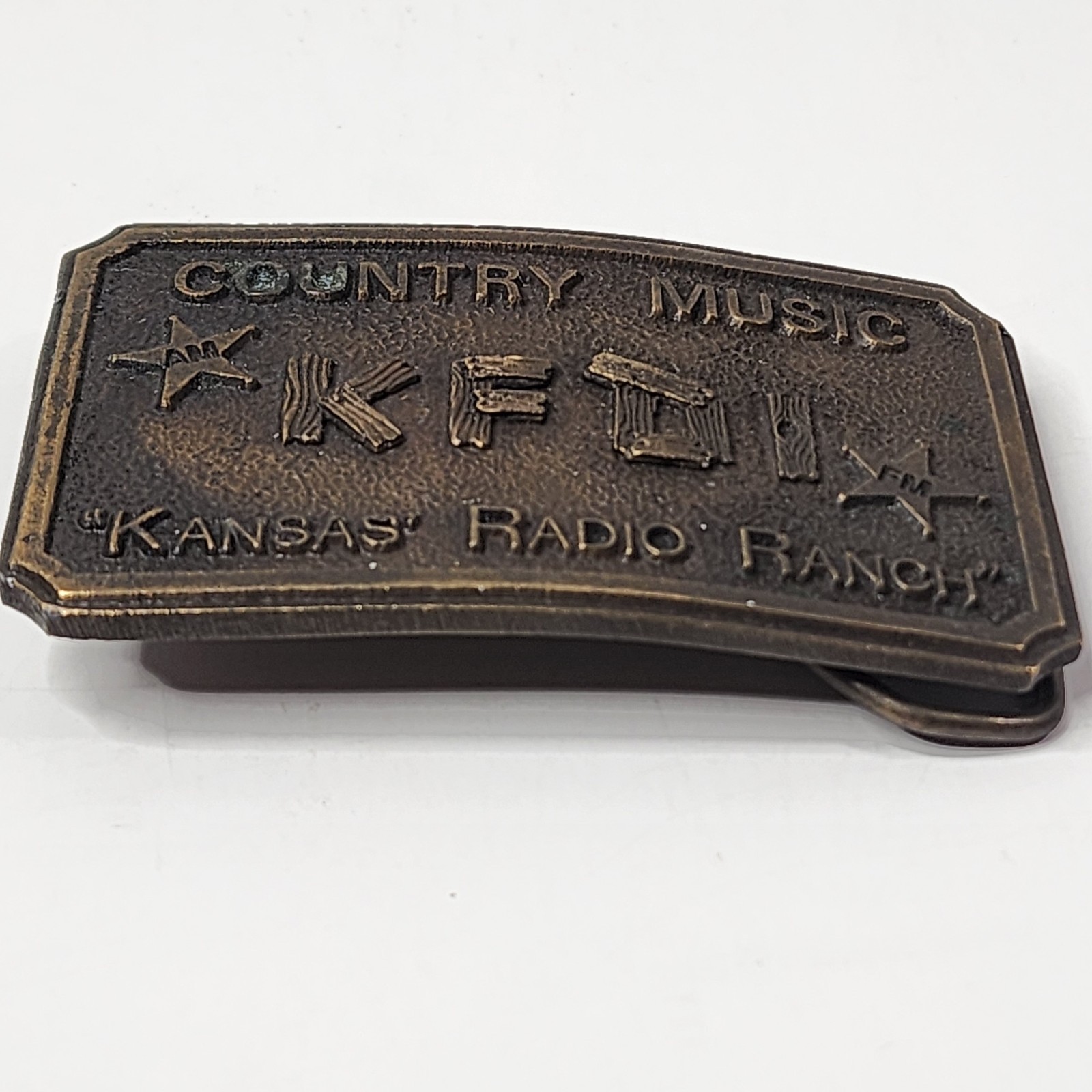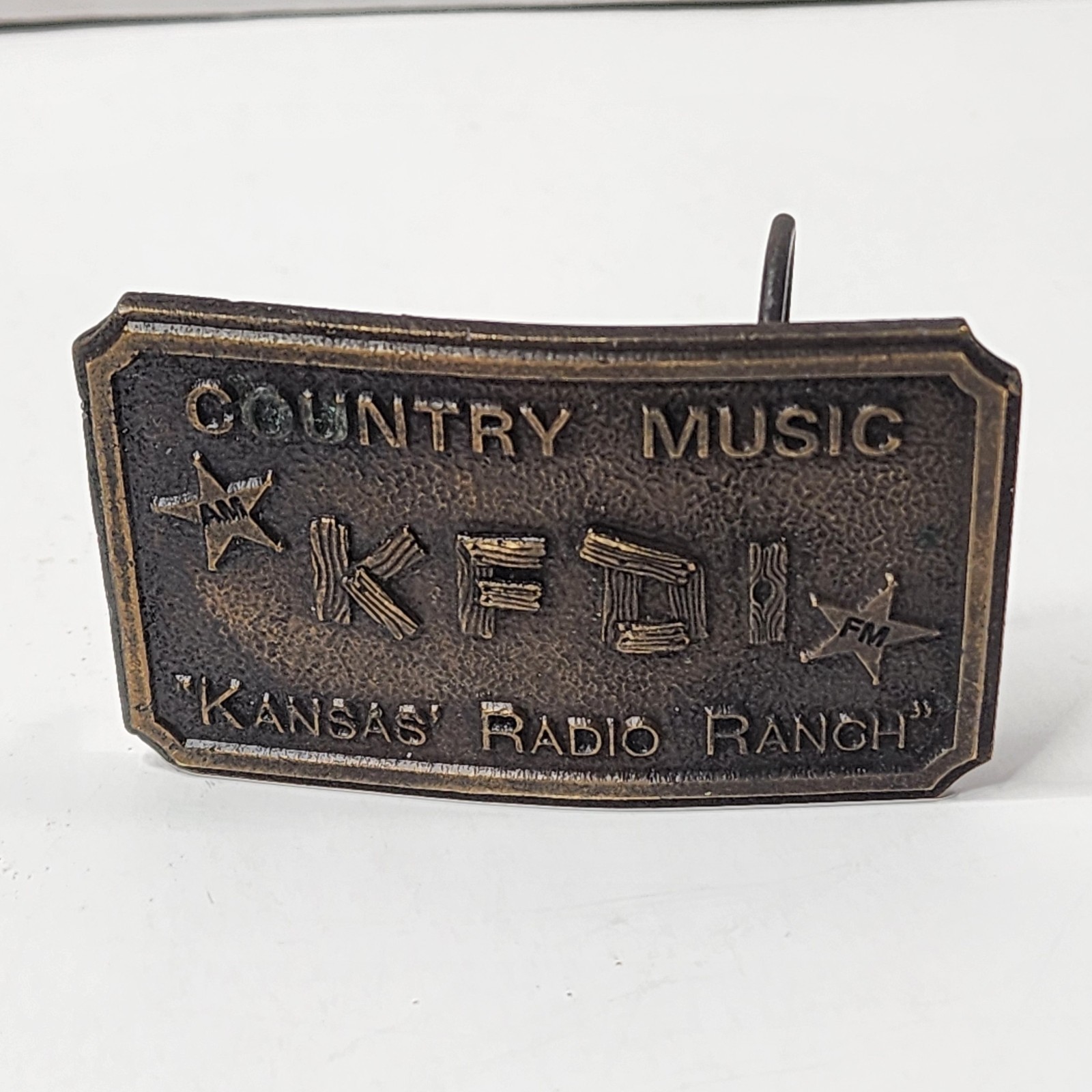 Vintage KFDI Brass Belt Buckle Country Music Radio Kansas Radio Ranch Beramont