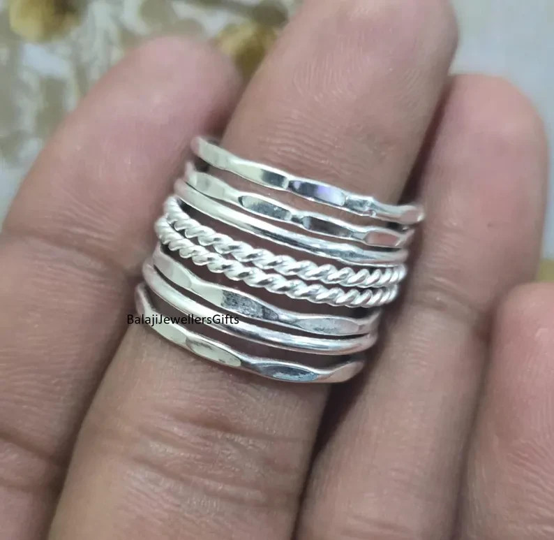 как выглядит Set of 8 Sterling Silver, Pure 925 Sterling Silver Rings, Handmade , All size фото