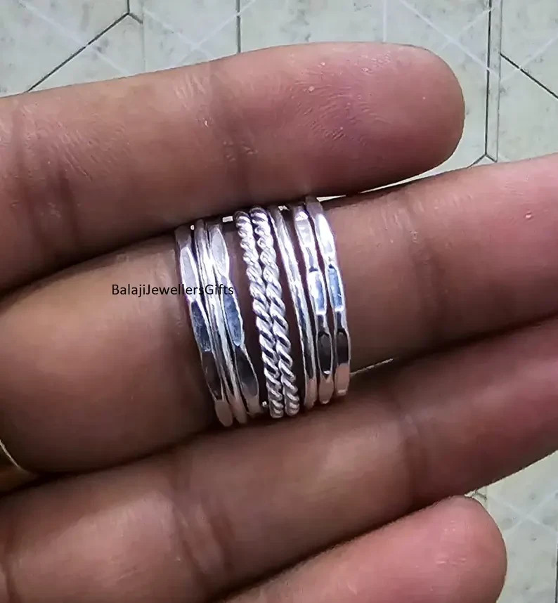 Set of 8 Sterling Silver, Pure 925 Sterling Silver Rings, Handmade , All size