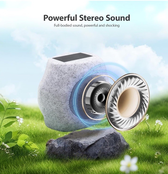 2-Pack Solar Rock Speakers With LED, Outdoor.