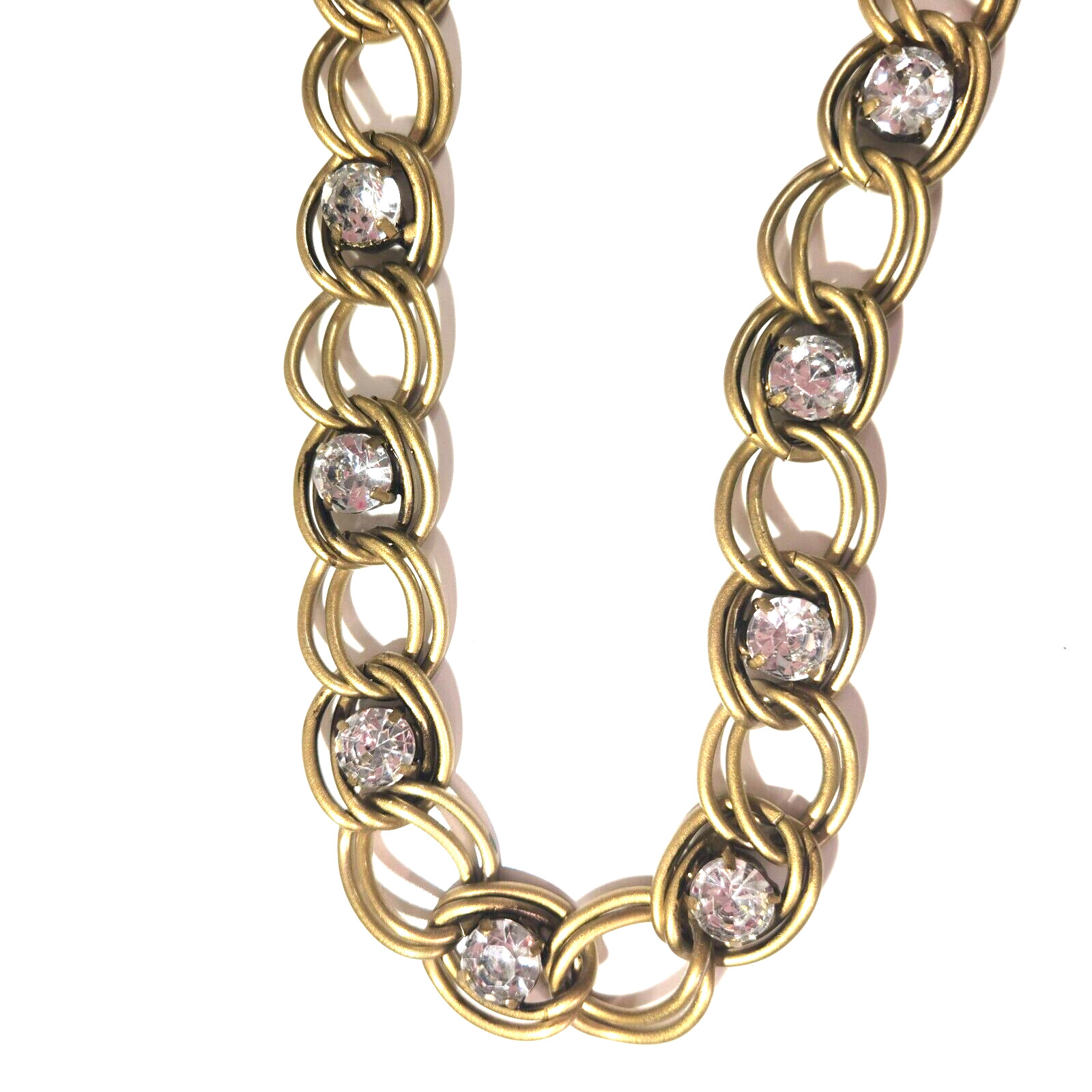 Chain Link Belt Matte Gold-tone w/ Rhinestones Lobster Closure 30-41