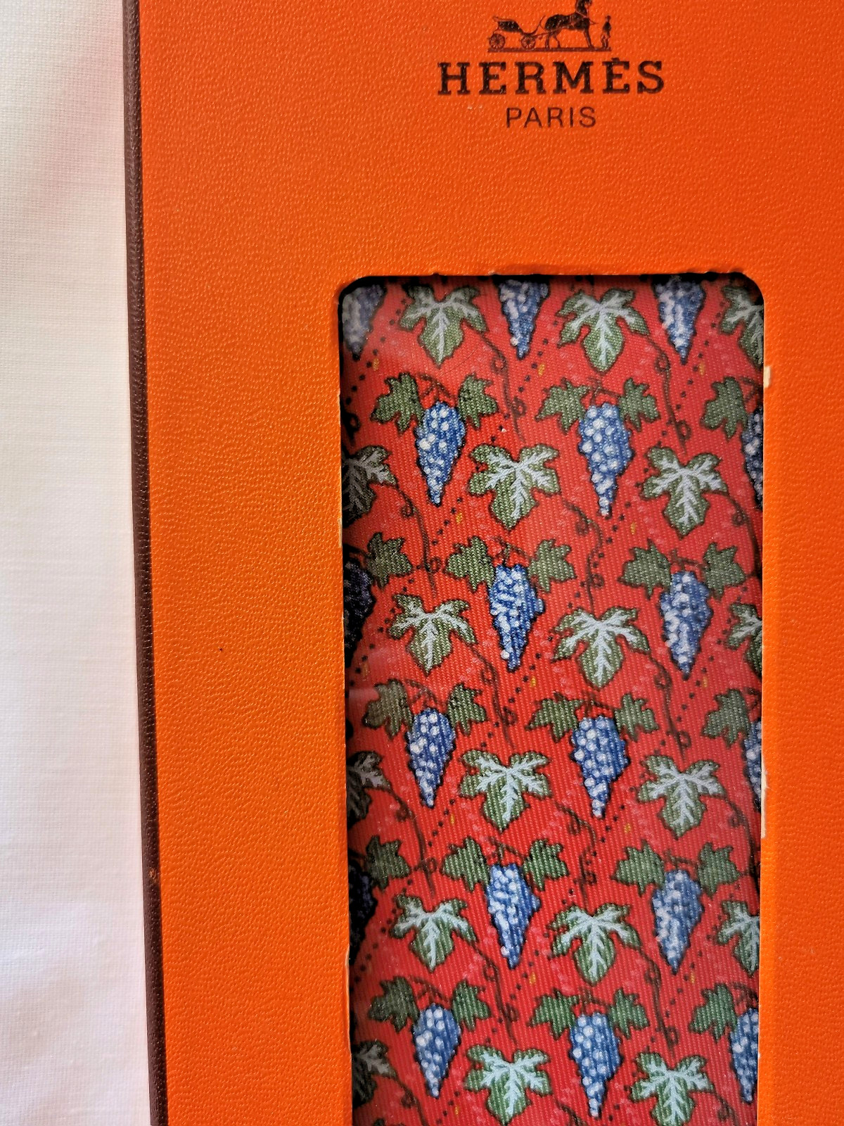 как выглядит HERMES Red Tie 100 Silk Grape Pattern 202 BRAND NEW IN SEALED BOX фото
