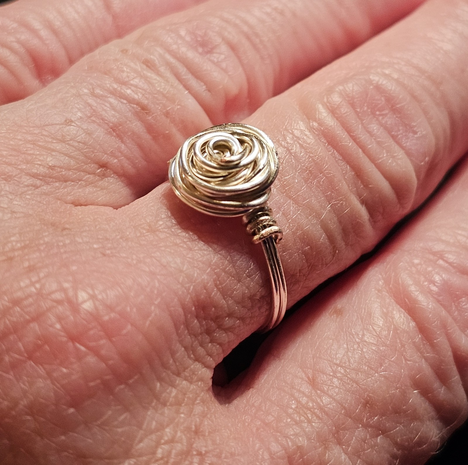 Wire Wrapped Rose Ring Gold Colored Copper, Handmade.