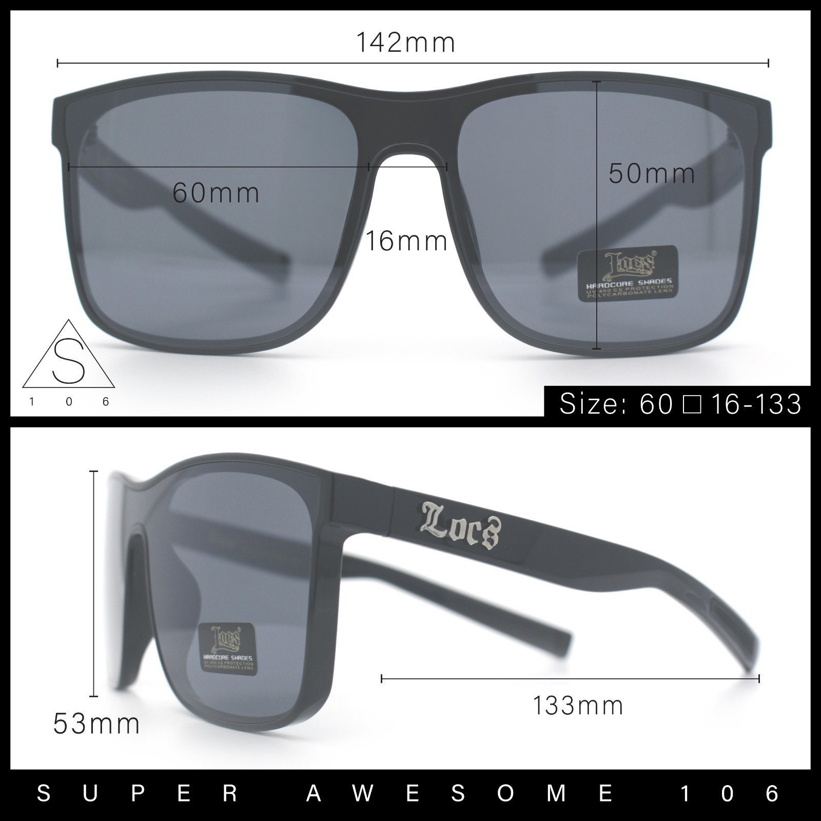 All Dark Black Locs Mens Oversize Inset Lens Shield Horn Rim Plastic Sunglasses