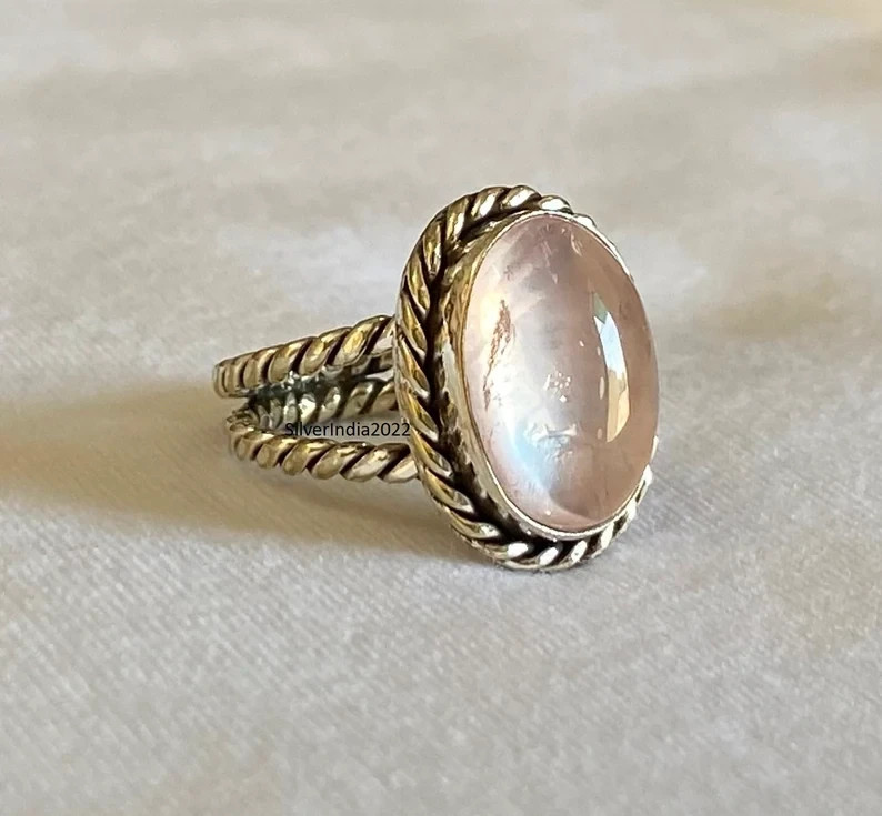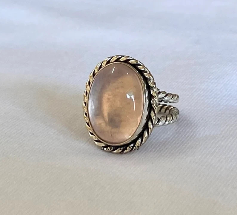 как выглядит Rose quartz Ring Handmade Ring 925 Sterling Silver Band Ring Statement ,All size фото