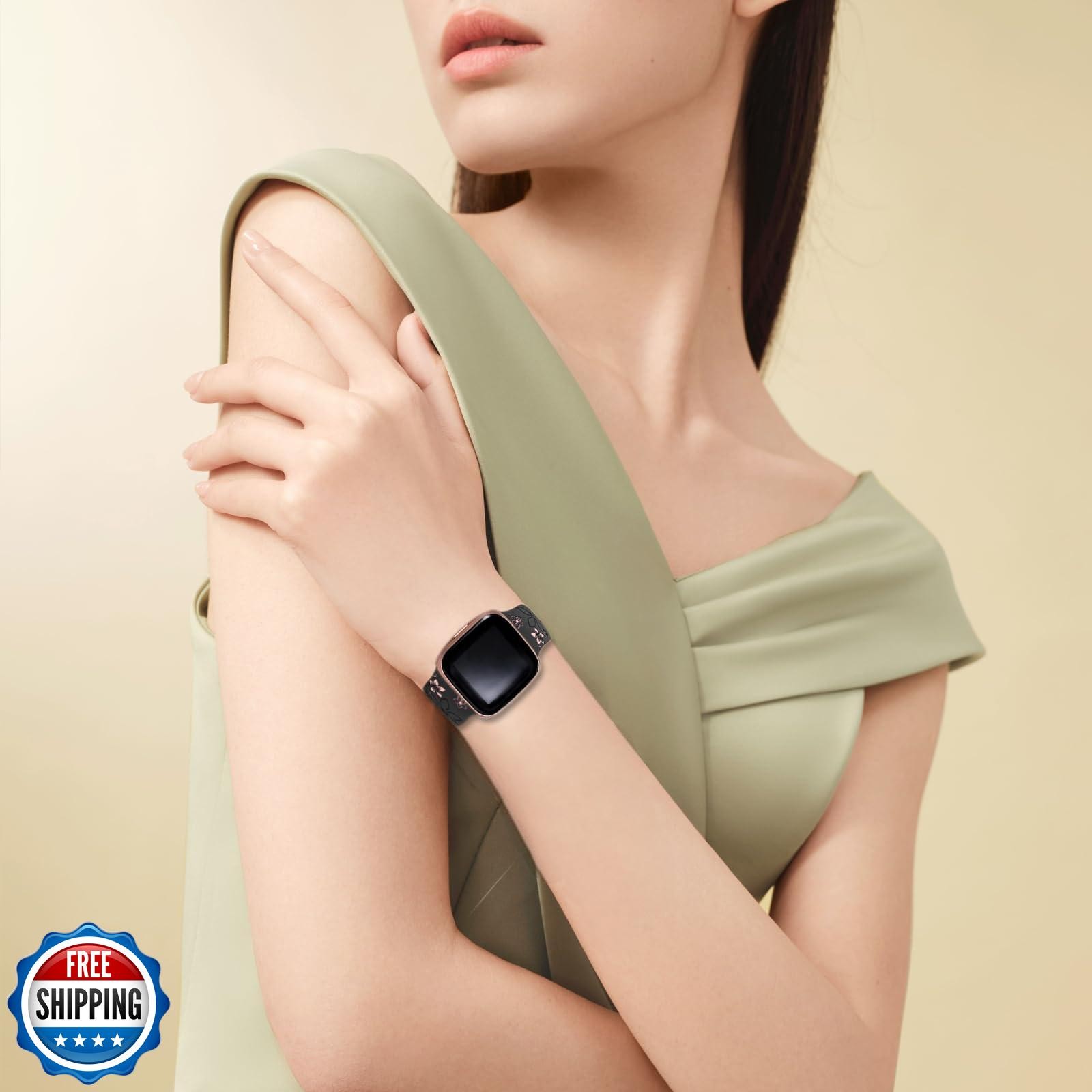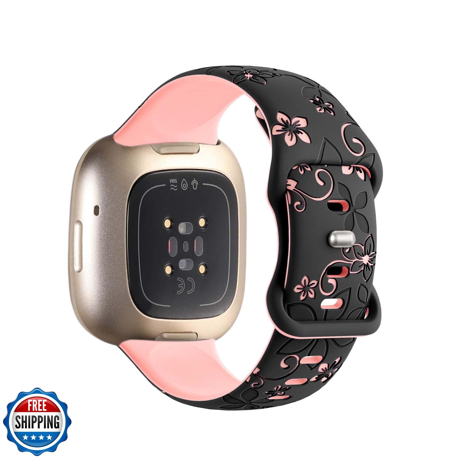Two-Tone Floral Engraved Band Compatible with Fitbit Versa 3/4/ Sense 2 Bands