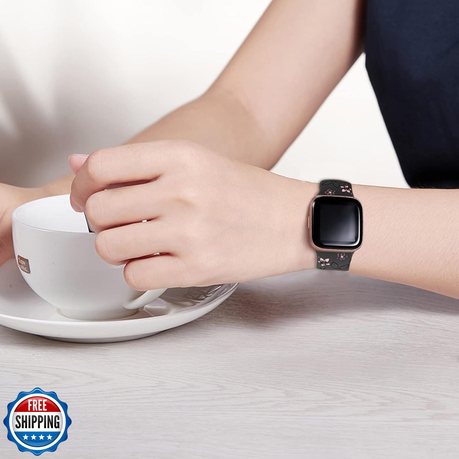 как выглядит Two-Tone Floral Engraved Band Compatible with Fitbit Versa 3/4/ Sense 2 Bands фото