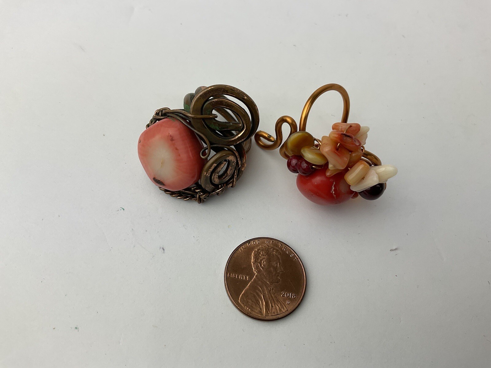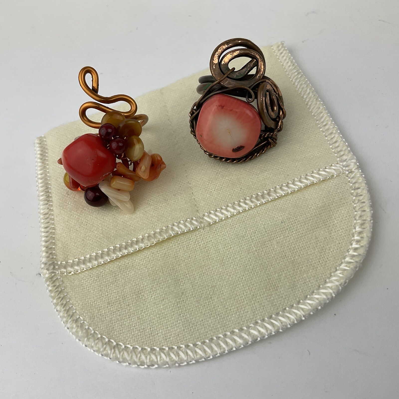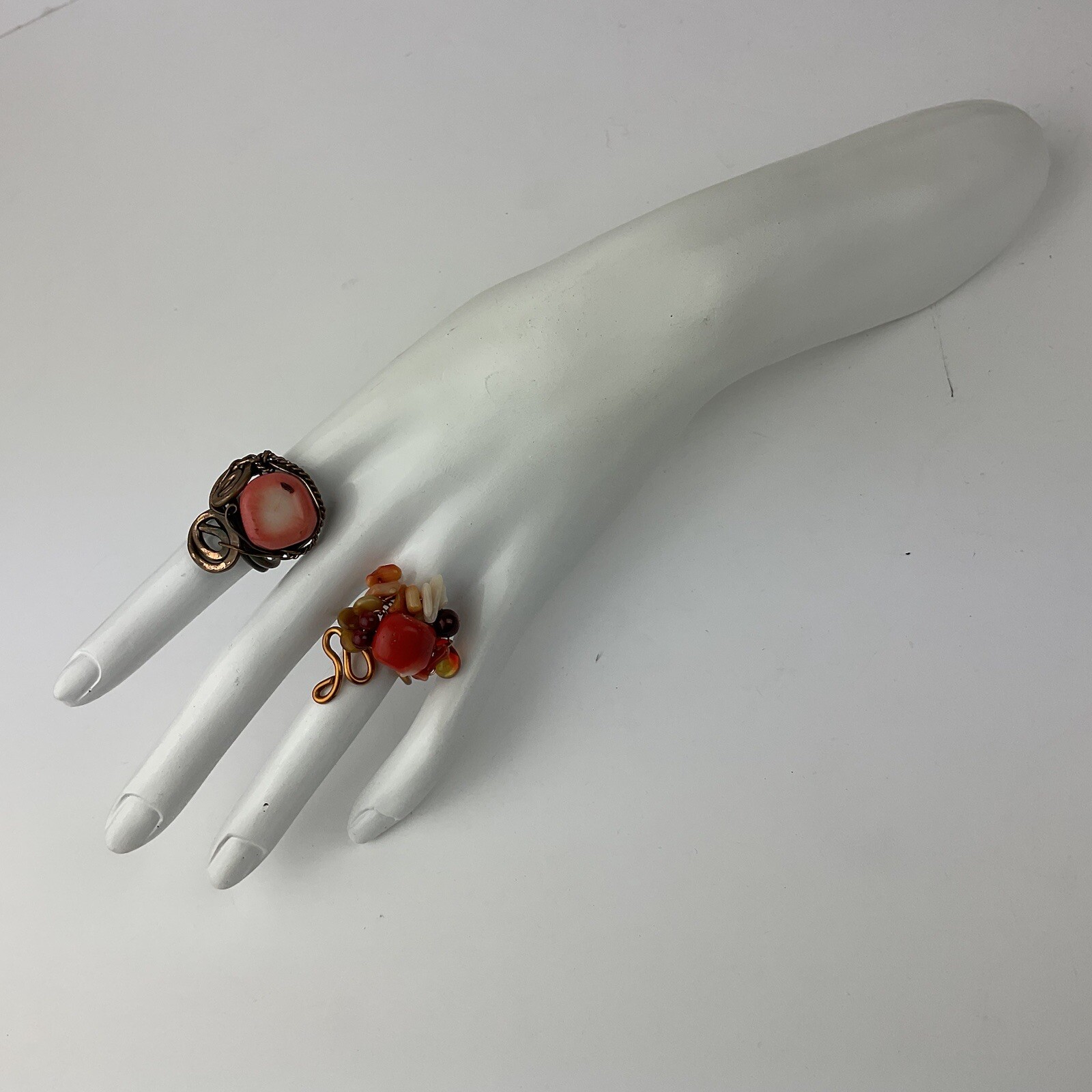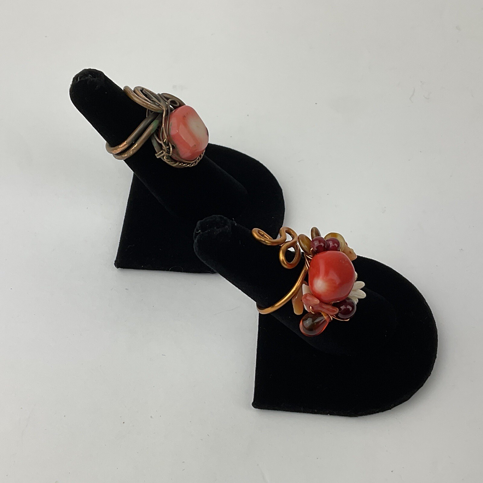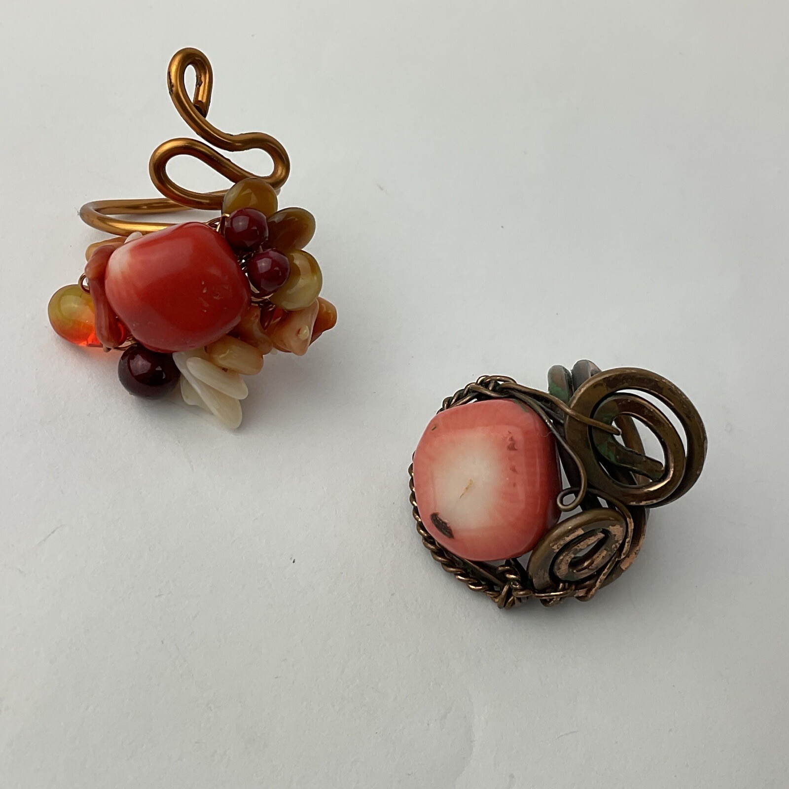 Artisan Made 2 Coral Copper Wire Wrapped Rings Statement Size 5 Adjustable 5-8