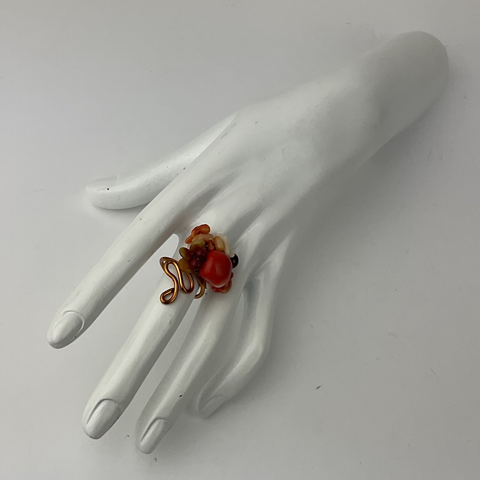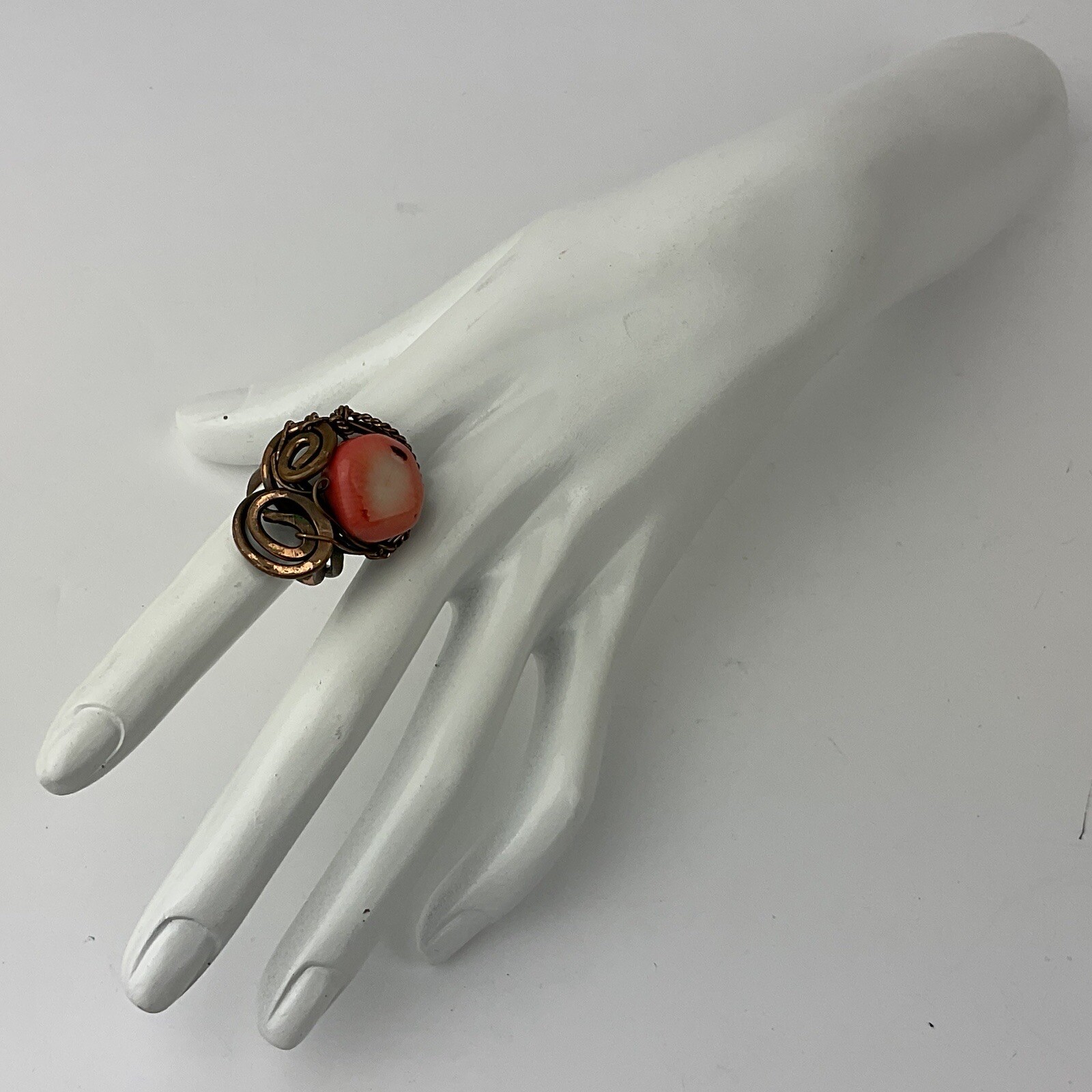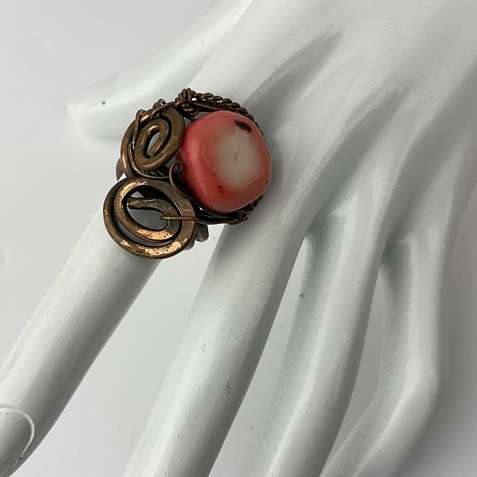как выглядит Artisan Made 2 Coral Copper Wire Wrapped Rings Statement Size 5 Adjustable 5-8 фото