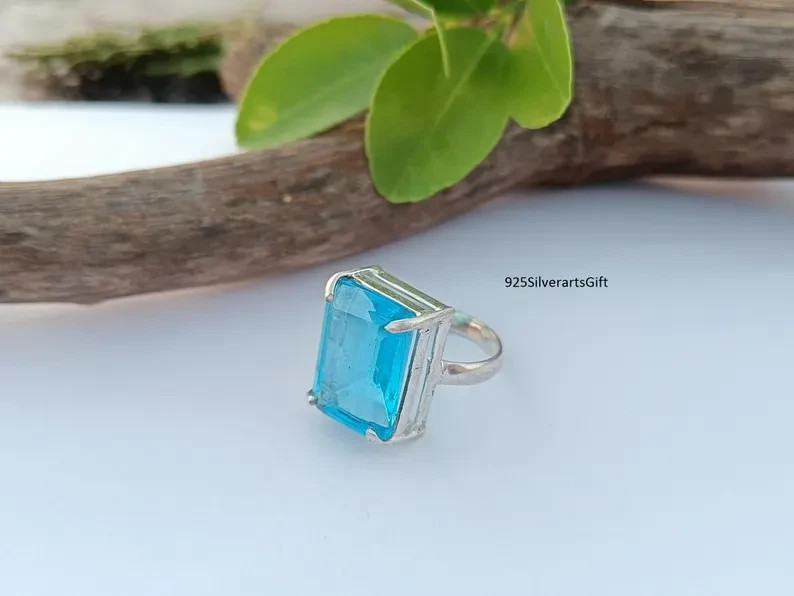 как выглядит Blue Topaz Ring, 925 Sterling Silver, Handmade Ring, Woman Ring, prett All size фото