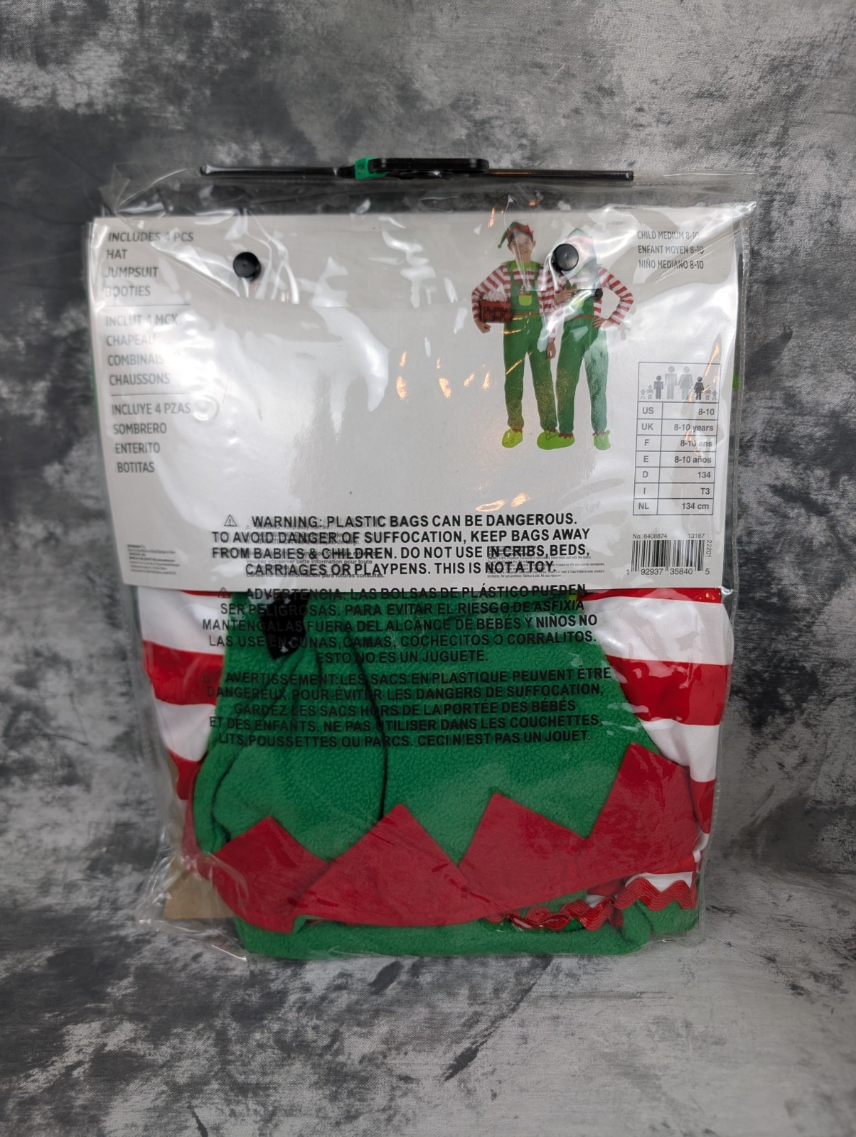 NEW 4 Piece Elf Christmas Holiday Unisex Suit Yourself Kids Costume Sz M / 8-10