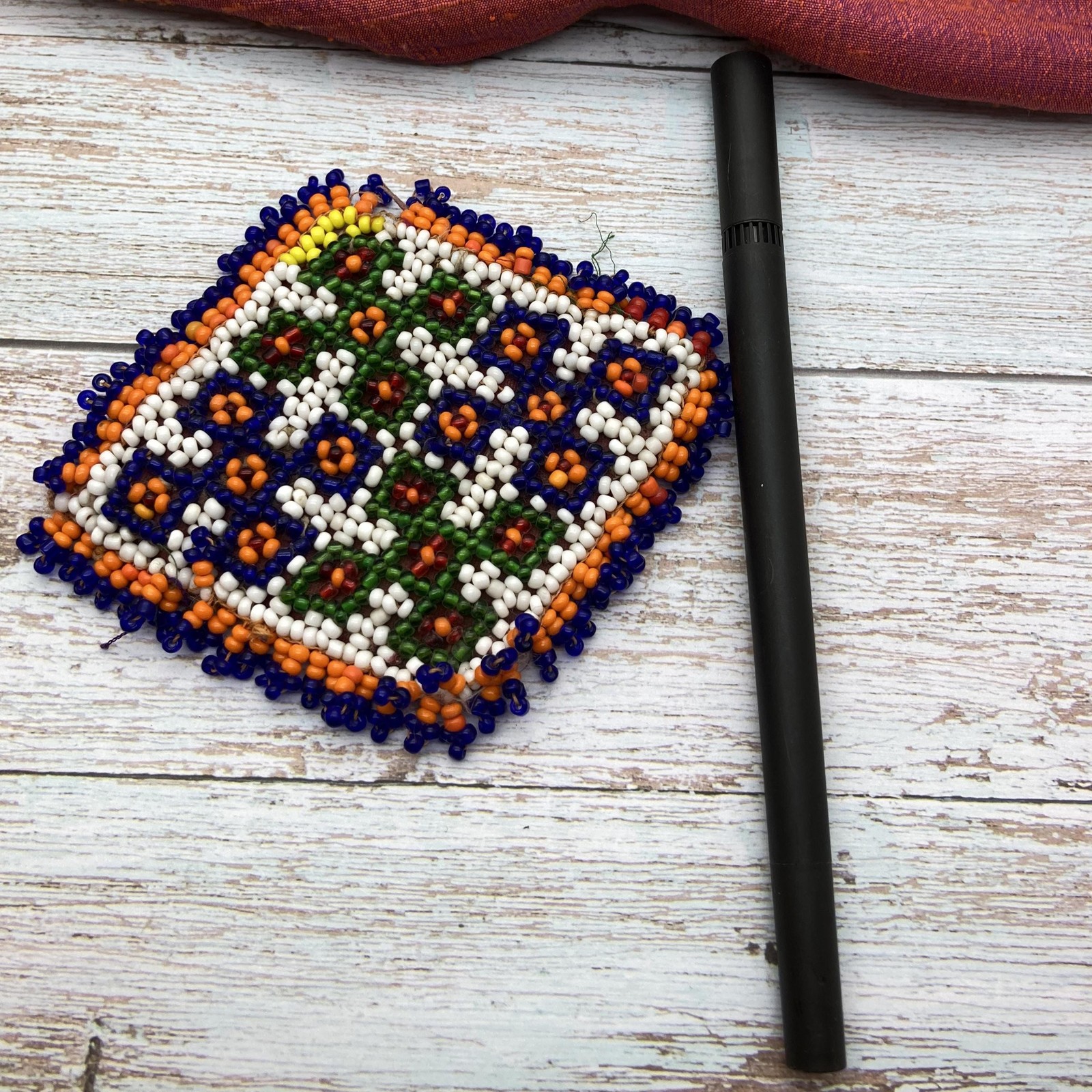как выглядит Vintage Evil Eye Patch Kuchi Tribal Textile Missing Beads 18724 фото