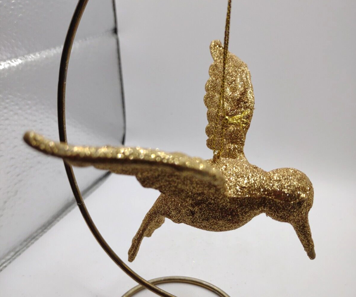 Gold Hummingbird Bird Glitter Sparkly Christmas Tree Holiday Ornament 4.5"L