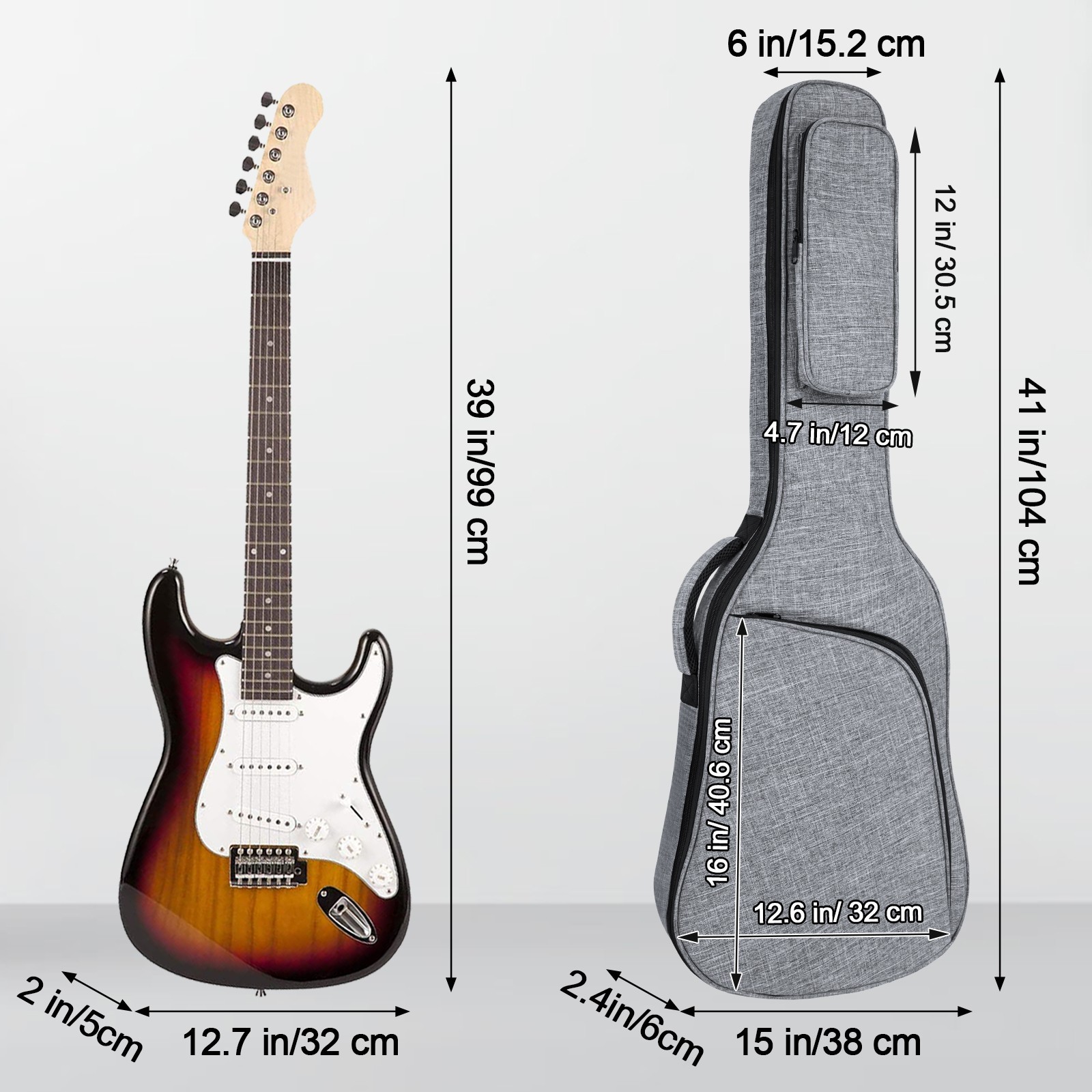 39 Inch Electric Guitar Bag Soft Guitar Case, 11 MM /0.4in Thick Padded