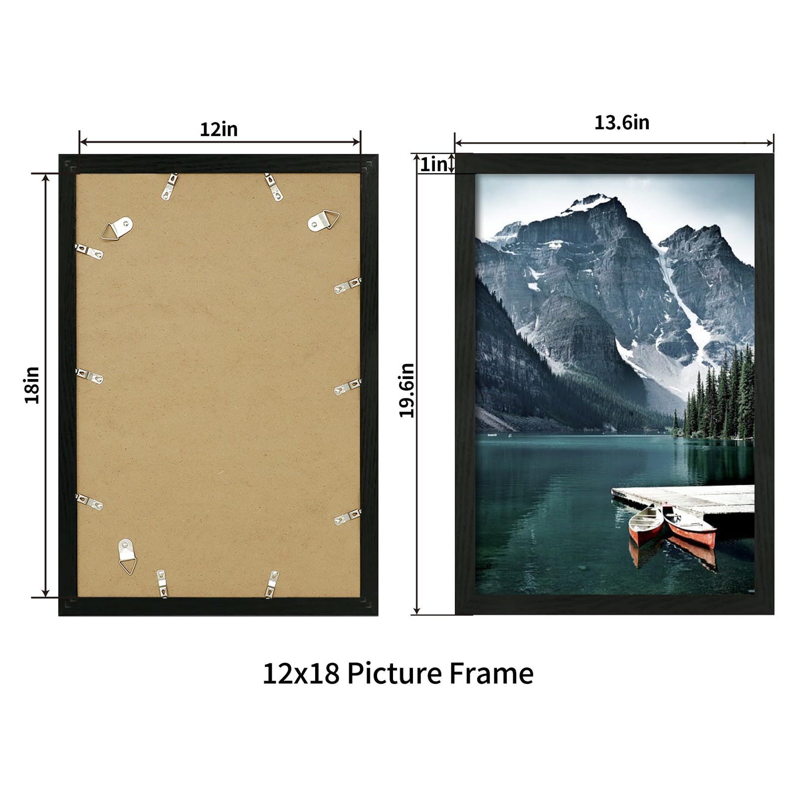 12x18 Picture Frame Set of 2 with Plexiglass, Black Wood Poster Frames for Ph...