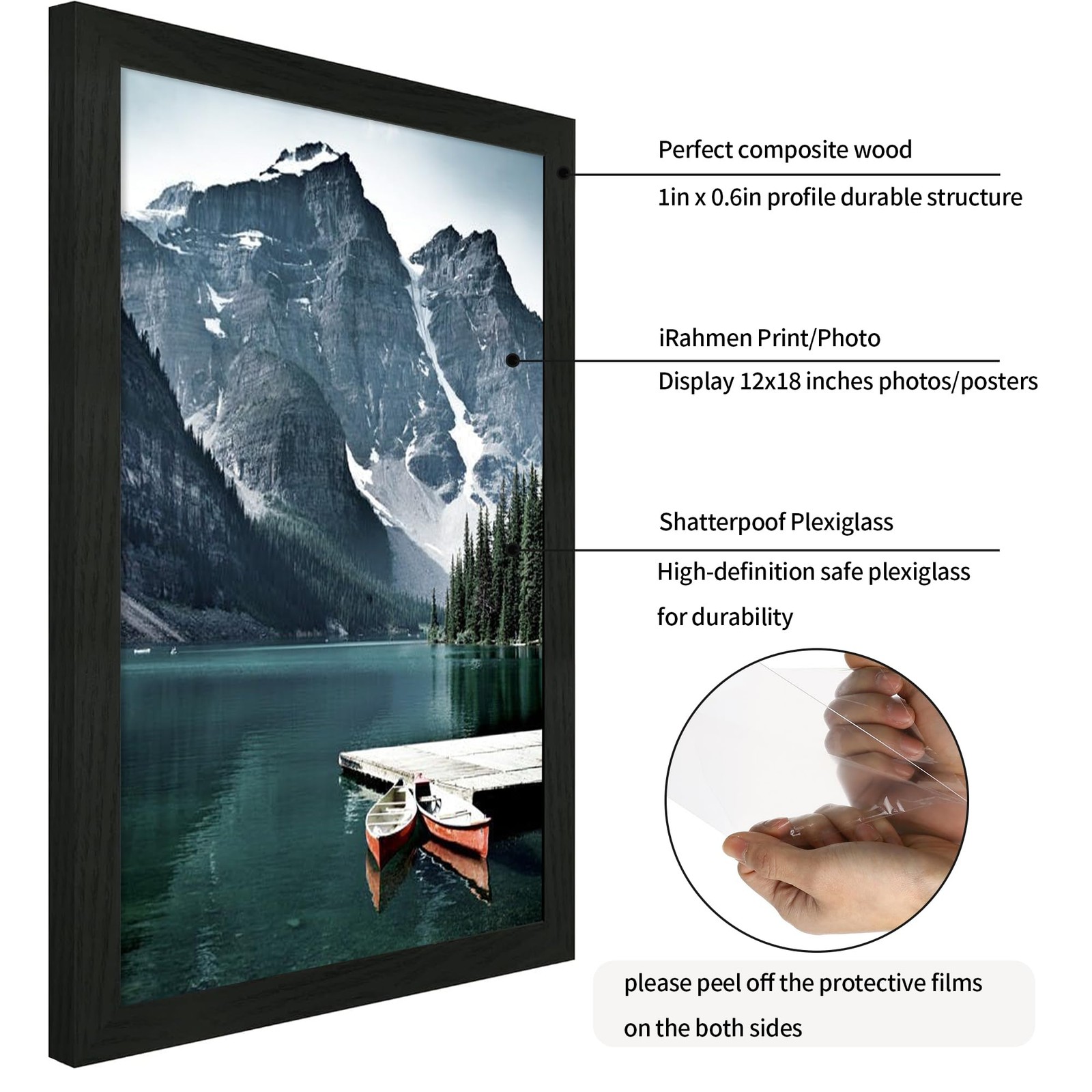 как выглядит 12x18 Picture Frame Set of 2 with Plexiglass, Black Wood Poster Frames for Ph... фото