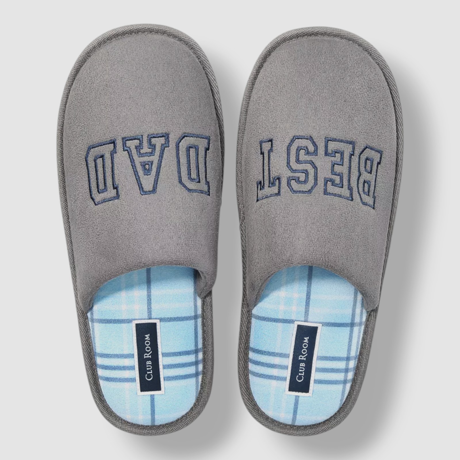 Club Room Men's Gray Best Dad Embroidered Slippers Shoes Size 10-11/L