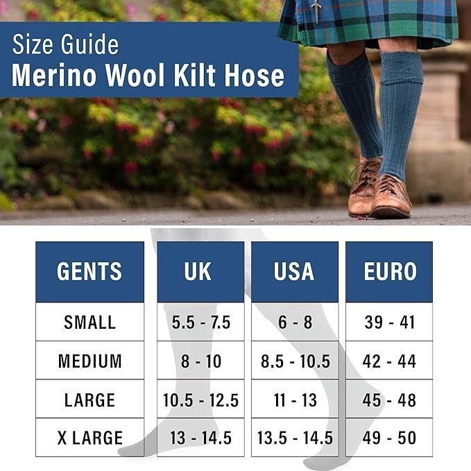 Merino Wool Kilt Hose for Men - Made in Scotland - Traditional Kilt Socks