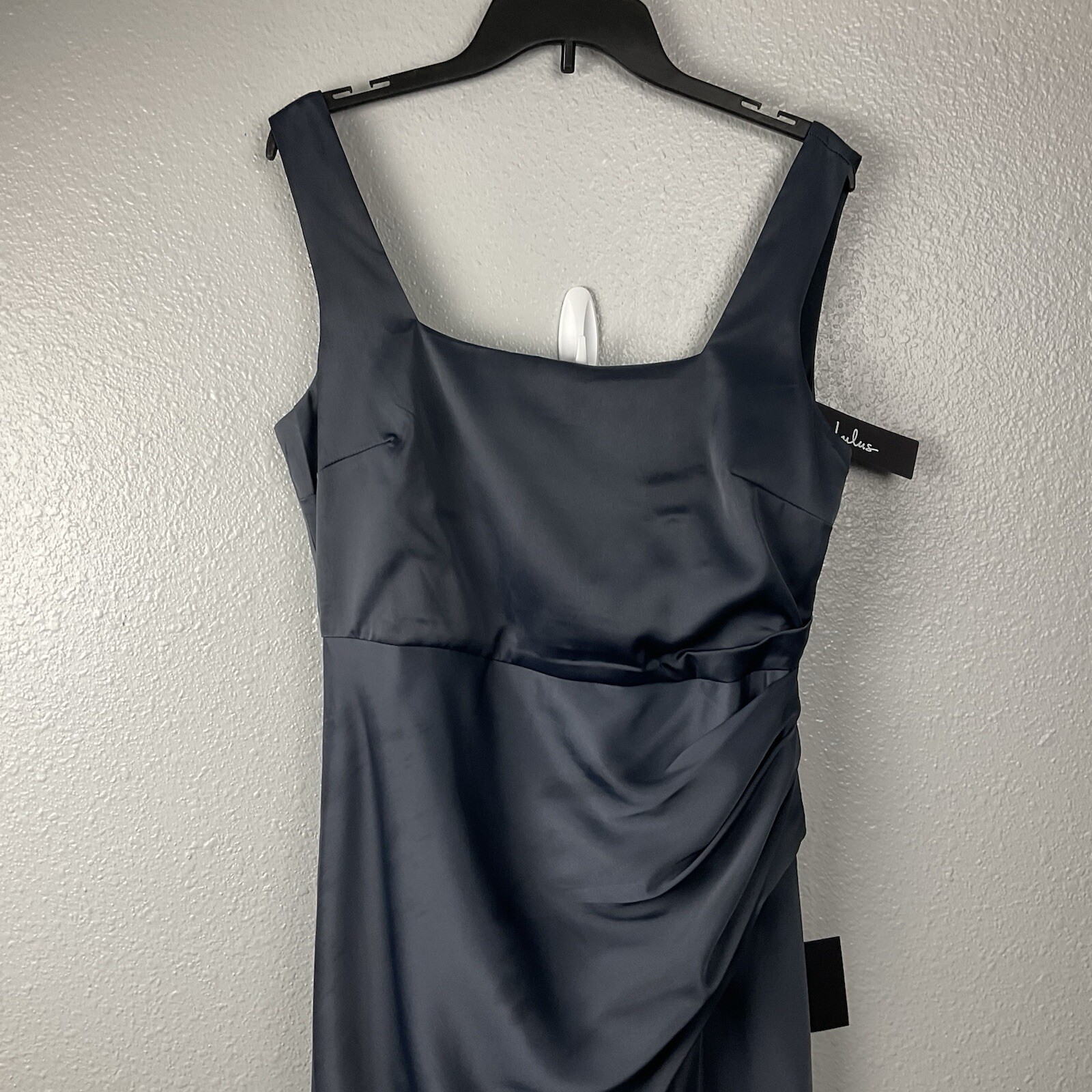 как выглядит NWT Lulus Red Carpet Romance Dark Grey Satin Square Neck Maxi Dress Formal Sz L фото