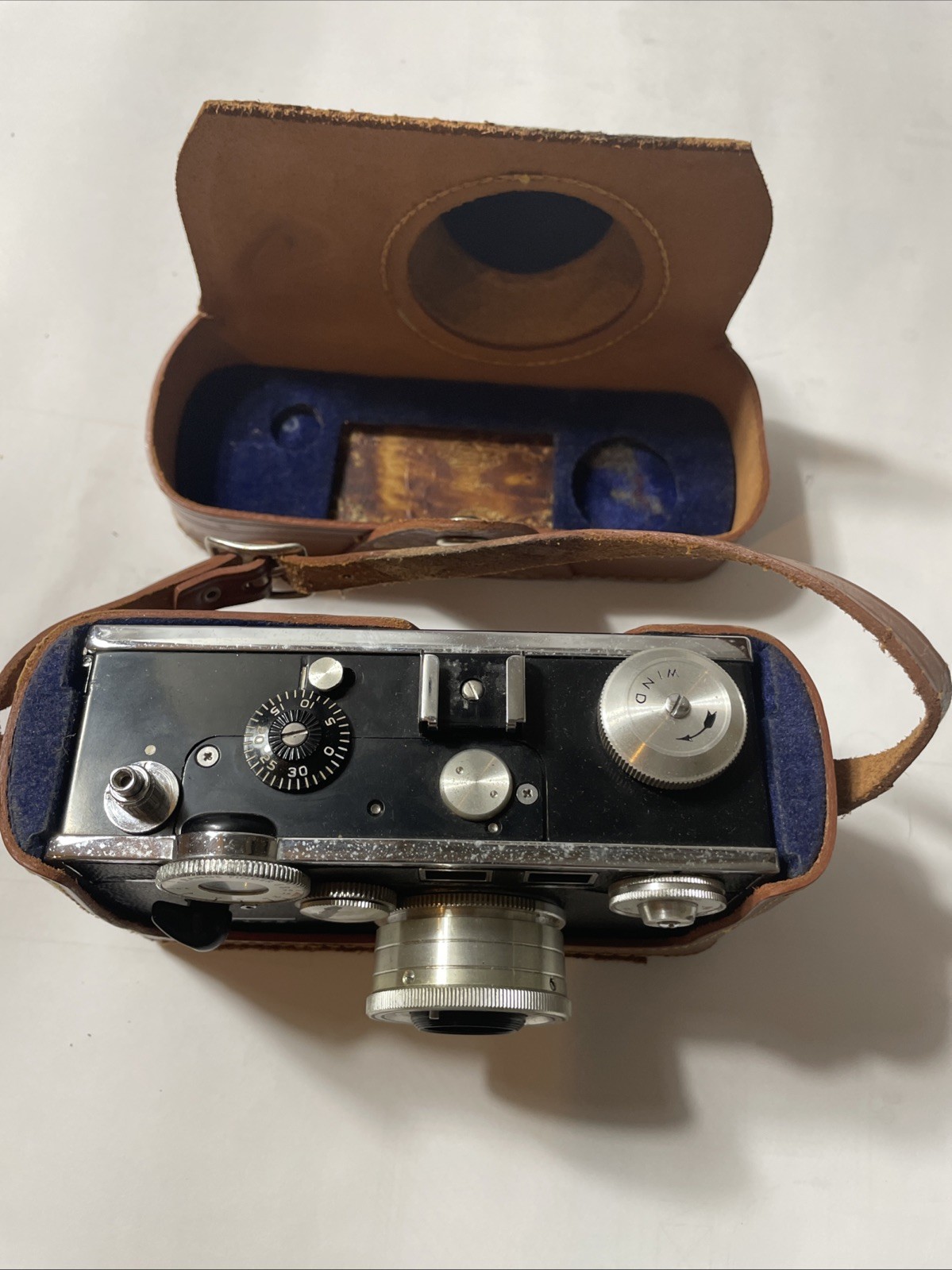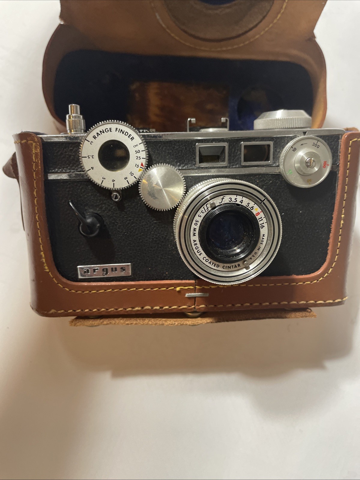 Vintage Argus C-Four 35mm Camera With 50mm f/2.8 Cintar Lens And Leather Case