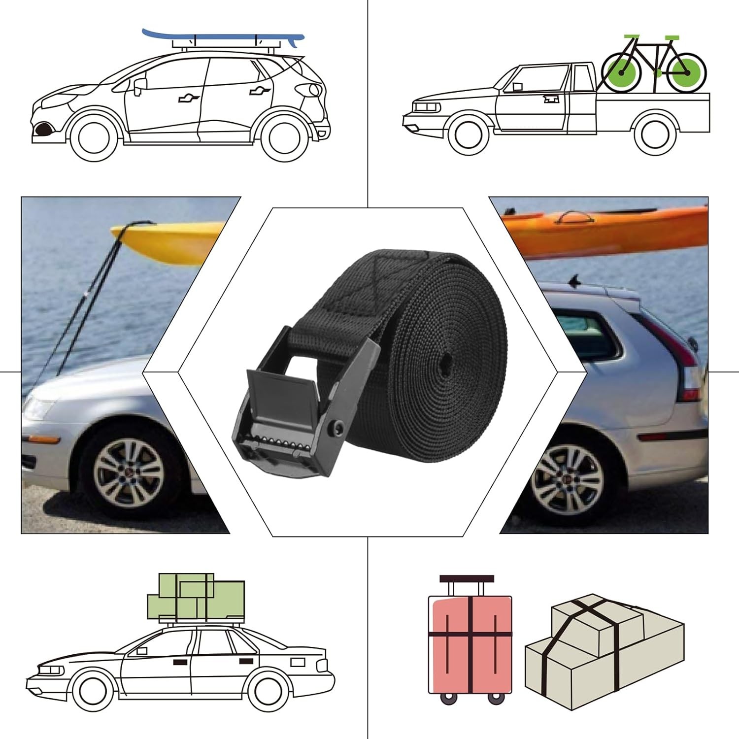 TRIWONDER Tie Down Straps, Lashing Straps Nylon Webbing, Cam Buckle Adjustable H