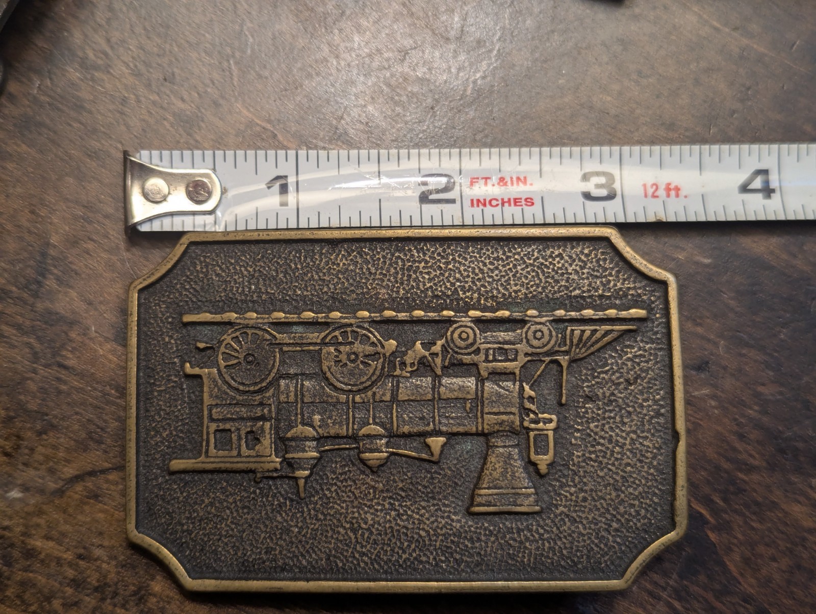 как выглядит BTS Solid Cast Brass Locomotive Belt Buckle VINTAGE Train Engine 3.25" Fits 1.75 фото