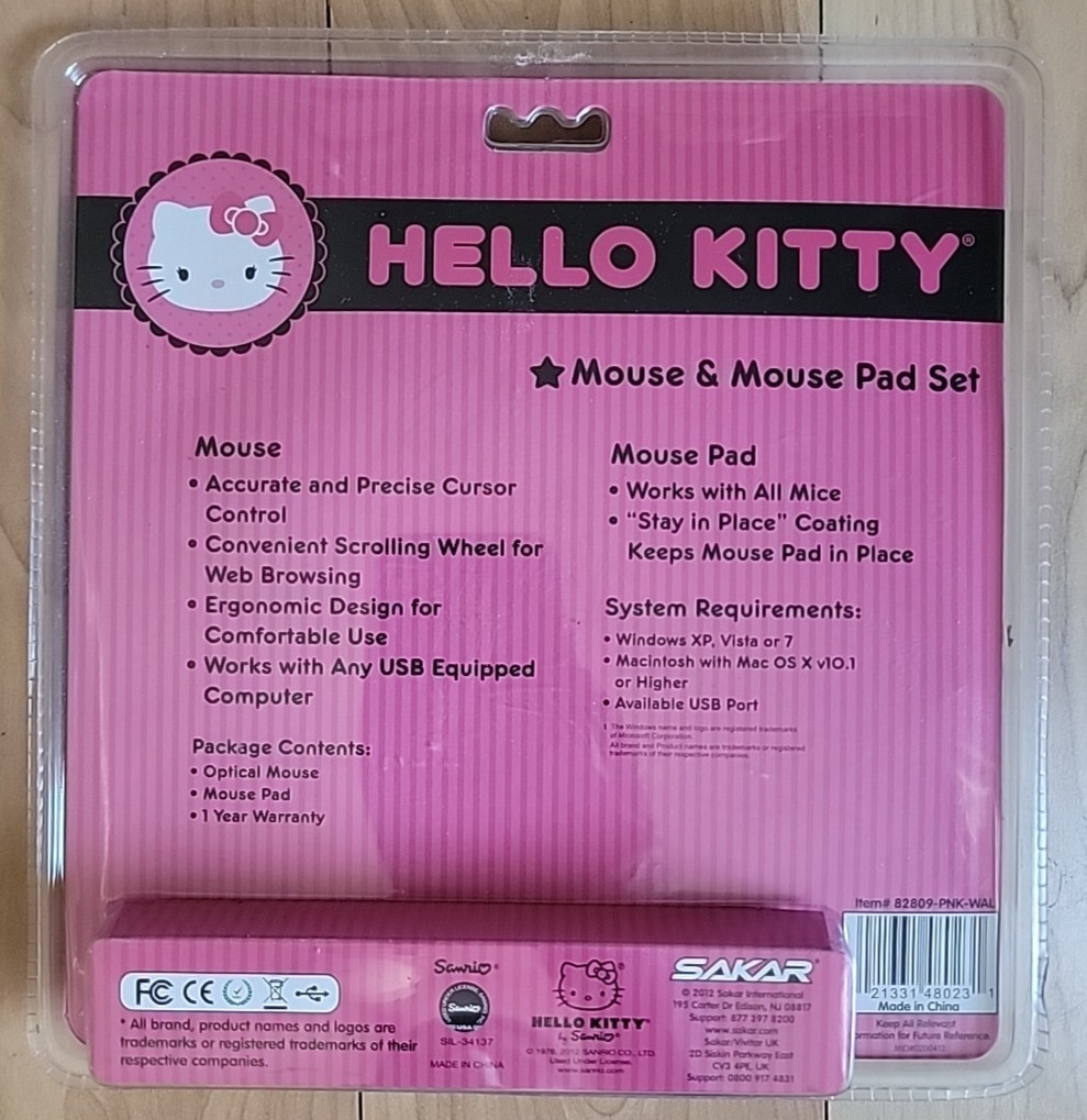 Hello Kitty Optical Mouse WIRED Black 2012 Mouse Pad Sakar New Factory Sealed