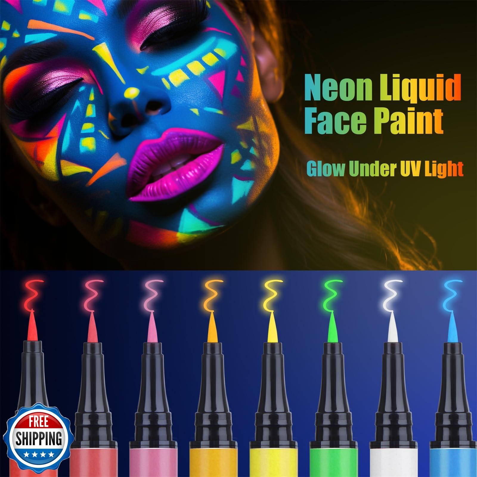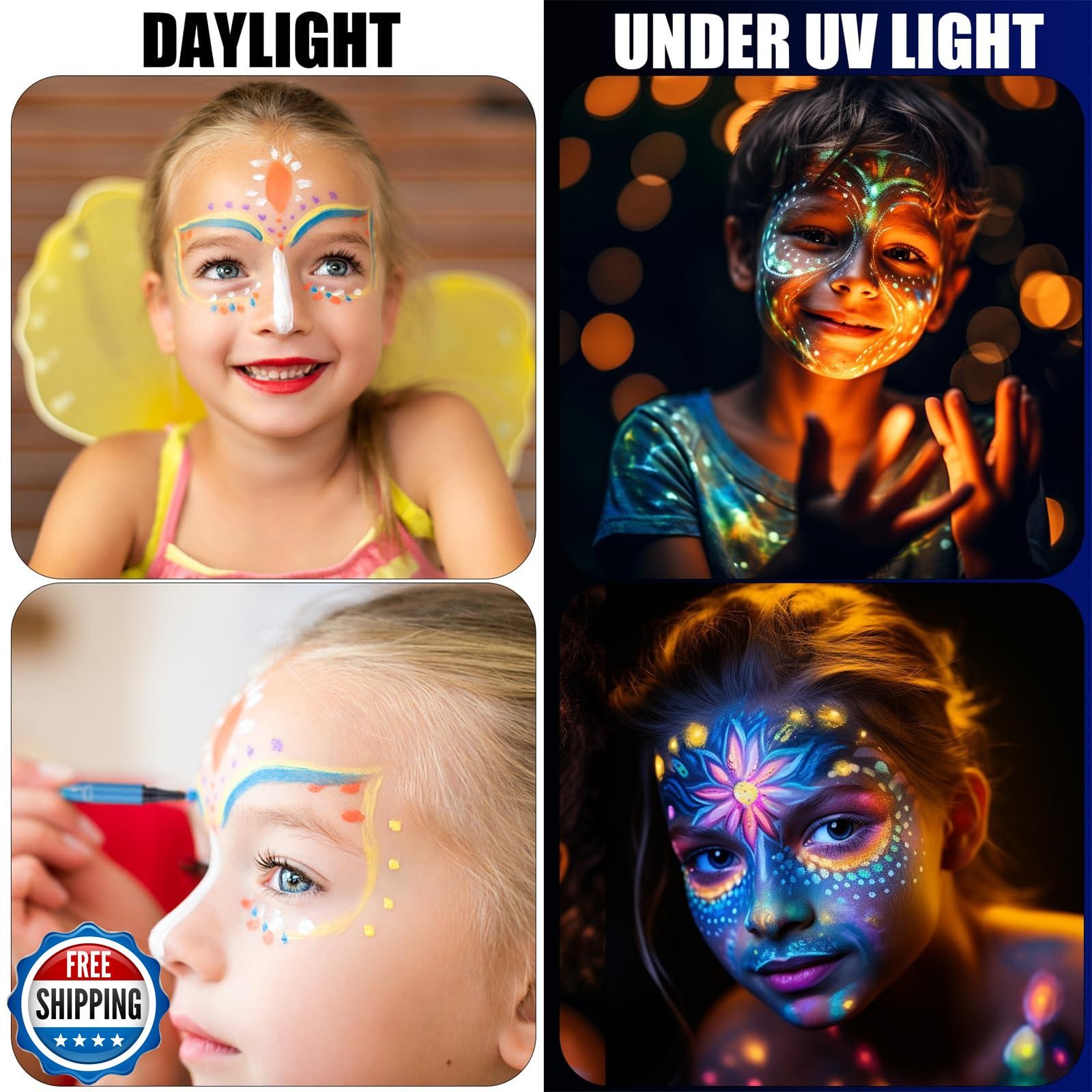 JimandGloria Water-Resistant Face Paint Pen Glow In the Dark Under UV Light 8